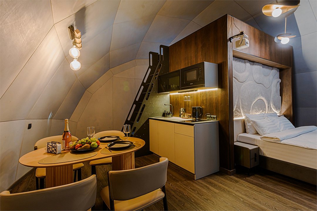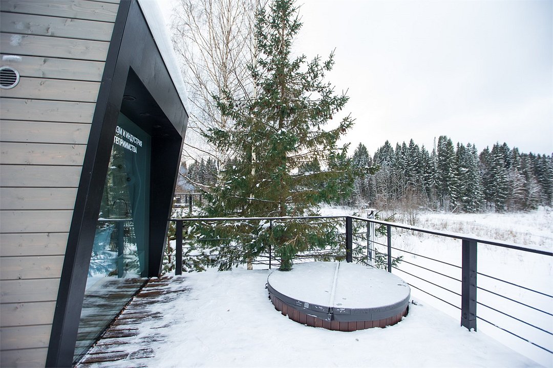 Модульный четырехместный дом с сауной и купелью с гидромассажем и подсветкой