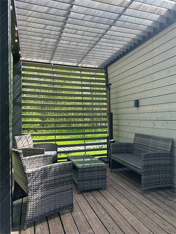 Приватность возведена в философию: пять отдельных домов, каждый с собственной закрытой террасой, персональной зоной барбекю и отдельным подходом через уединённые лесные тропинки.