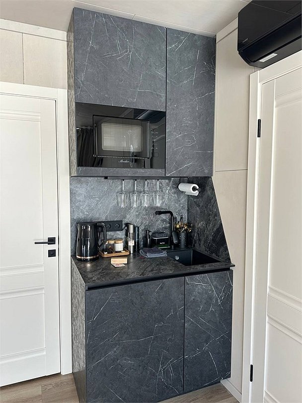 Чайник, холодильник, индукционная плита для приготовления пищи, фен, фильтр для воды, чтобы вечера были не только уютными, но и вкусными.