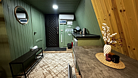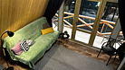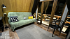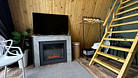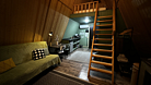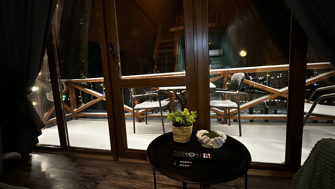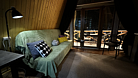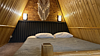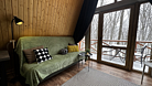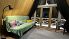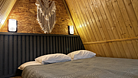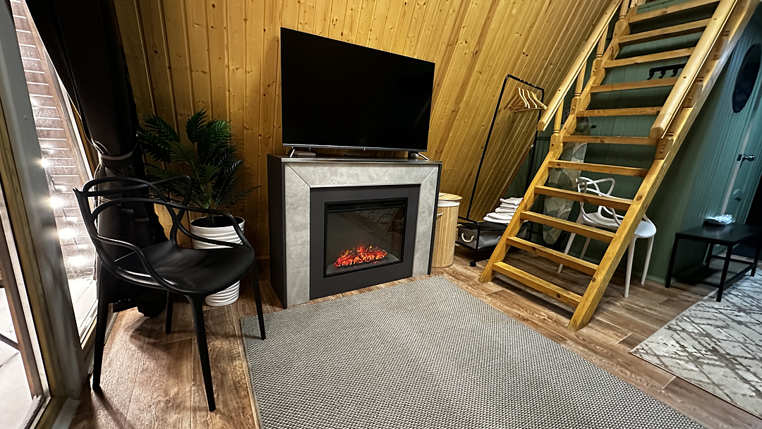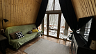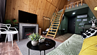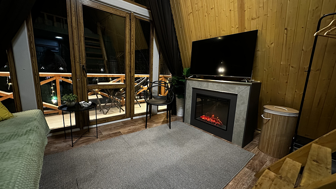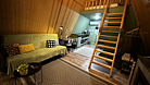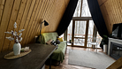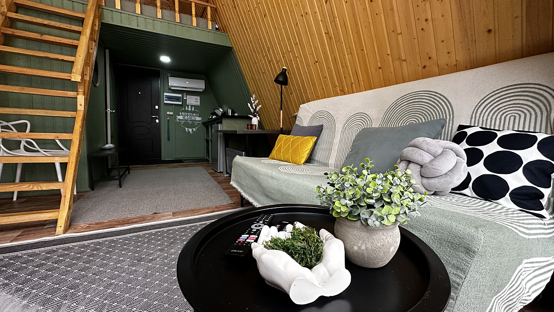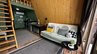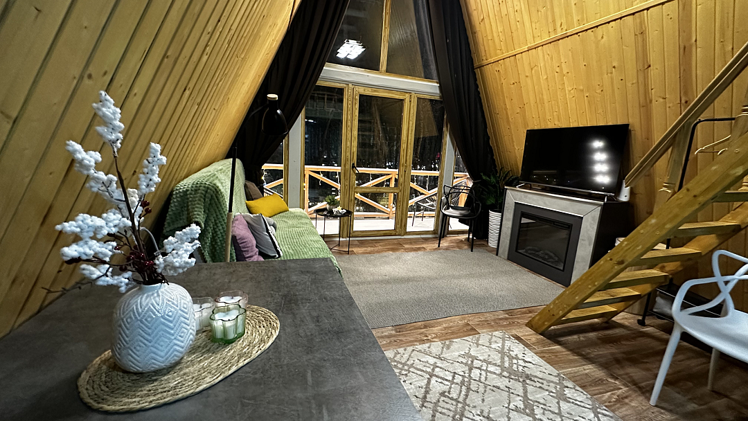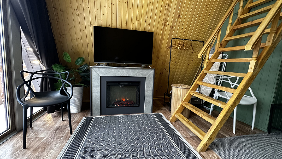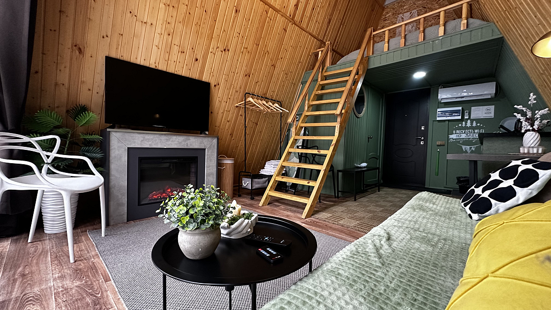 Дом оборудован двумя спальными местами: кроватью на втором этаже (200×160 см) и диваном на первом этаже (190×135 см).