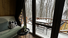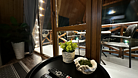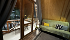 Зона курения на открытой веранде дома с видом на озеро.