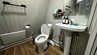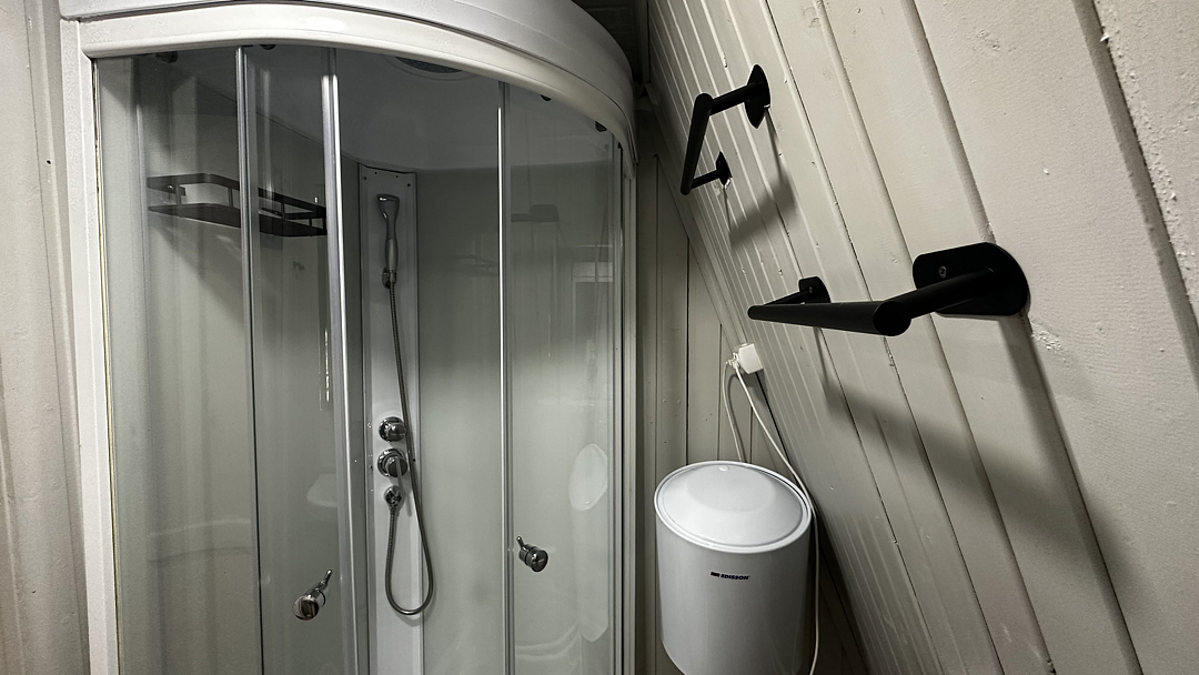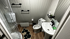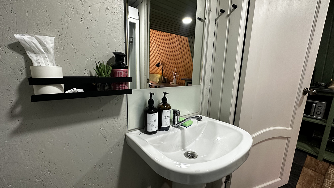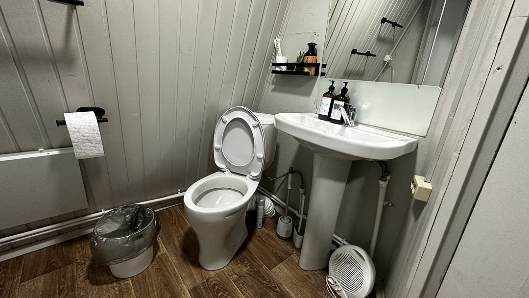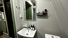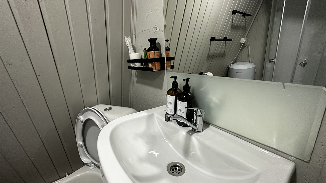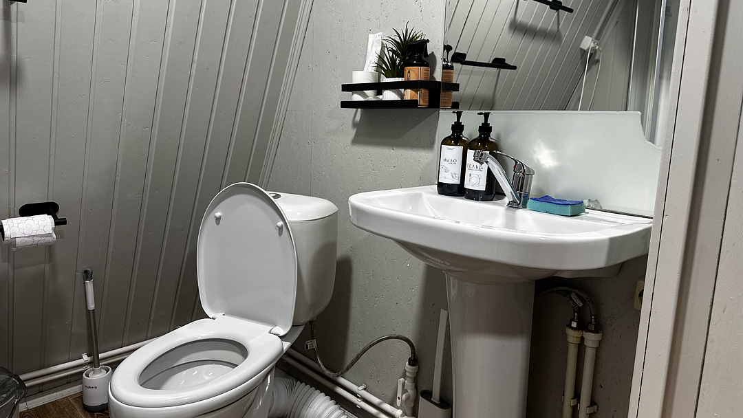 Санузел оборудован душевой кабиной, туалетом, раковиной, набором для гигиены, полотенцами и тапочками.