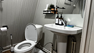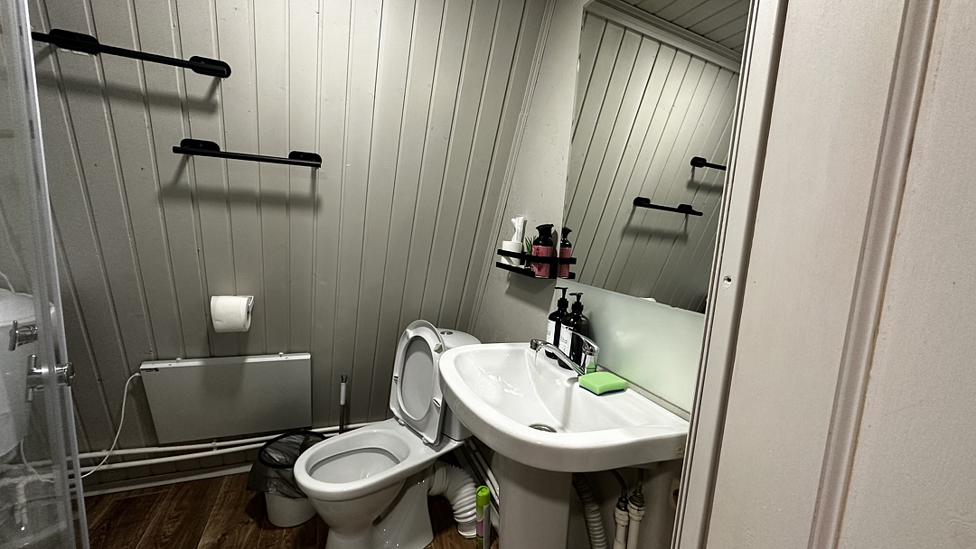 В санузле расположена душевая кабина, туалет, раковина, необходимый набор для гигиены, полотенца и тапочки для ваших удобств.