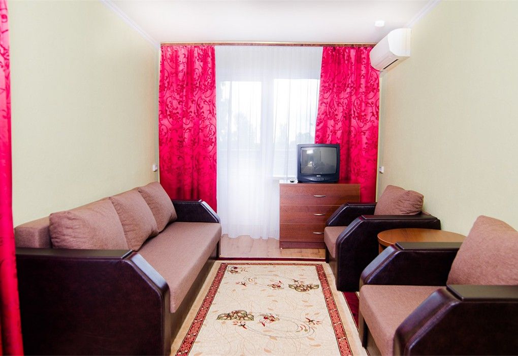 Двухкомнатный номер со спальней и гостиной комнатой, предназначен для комфортного размещения 2-3 человек. Можно выбрать одну двуспальную кровать или две односпальные.