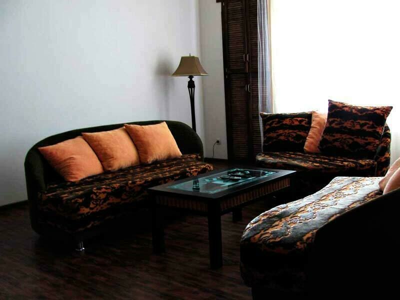 В номерах есть необходимая мебель, санузлы. Кухня-столовая оборудована духовым шкафом, газовой плитой, СВЧ-печью, холодильником, кофеваркой, электрочайником, столовыми приборами и посудой.