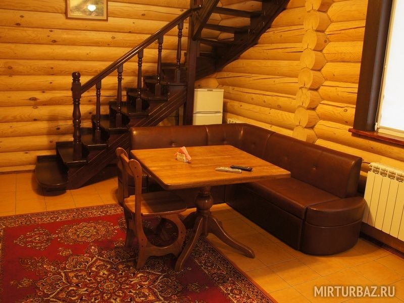 Две комнаты (по два спальных места), гостиная (диван, камин на дровах, телевизор, каб./спутниковое ТВ), кухня (со всеми удобствами) + столовая (на 6 персон), холодильник, вместительная прихожая, внутр. телефон, сейф, ванная комната на 1-ом этаже (душевая кабина), на 2-ом этаже - джакузи, терраса (доп. зона отдыха), беседка, мангал. Отопление.
