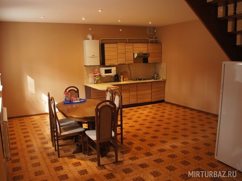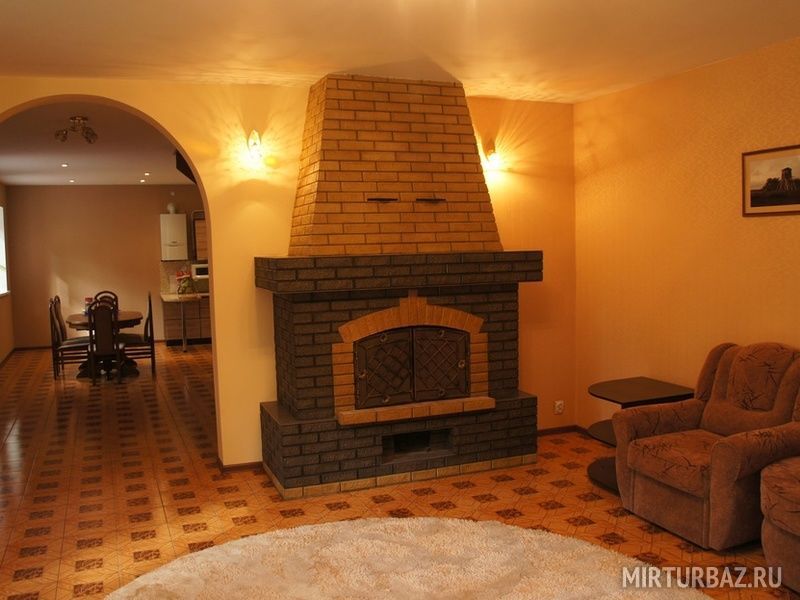 На первом этаже одна комната (два спальных места), гостиная (2 дивана, камин на дровах, 2 телевизора, каб./спутниковое ТВ), кухня (со всеми удобствами) + столовая (на 12 персон), холодильник, вместительная прихожая, внутр. телефон, сейф, ванная комната (душевая кабина), на 2-ом этаже - 2 комнаты (по два спальных места) и 1 комната (4 спальных места), ванная комната.