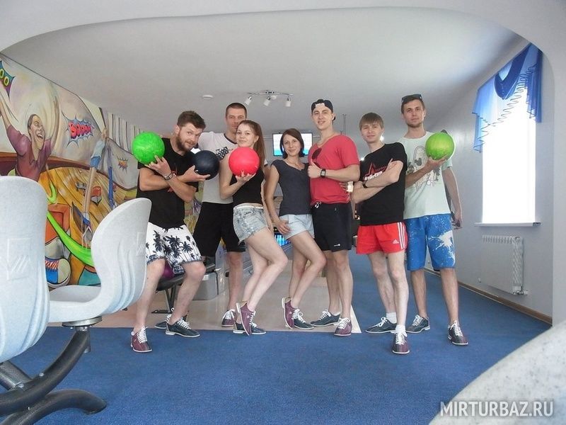 территория небольшая, но довольно ухоженная с признаками развития. вокруг сосновый лес, можно до реки прогуляться. есть боулинг и бассейн с хамамом. рекомендую записываться заранее, бывает аншлаг.Недостатки1.окна нашего номера 15 выходят на спортивную площадку. мы приехали отдохнуть, соответственно отоспаться, но нам не очень повезло- заехала какая-то большая группа спортсменов (борцов скорее всего), с утра, еще восьми не было , наверное, не было, включили под окнами громкую музыку и орали, как потерпевшие. Администрация,конечно, здесь, не виновата. Но имейте ввиду такие моменты, если ваши окна будут выходить на площадку для воллейбола.