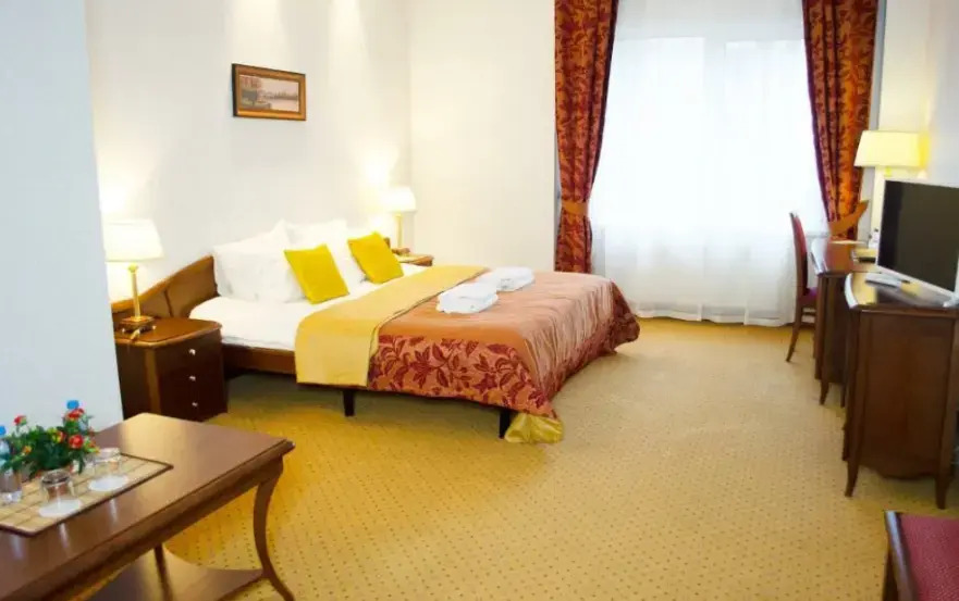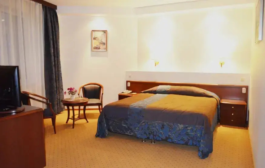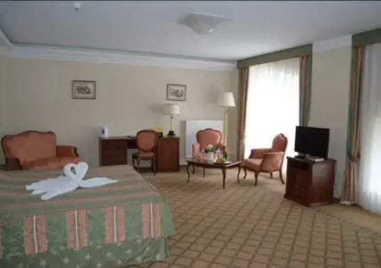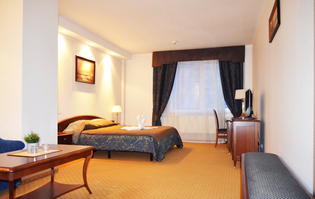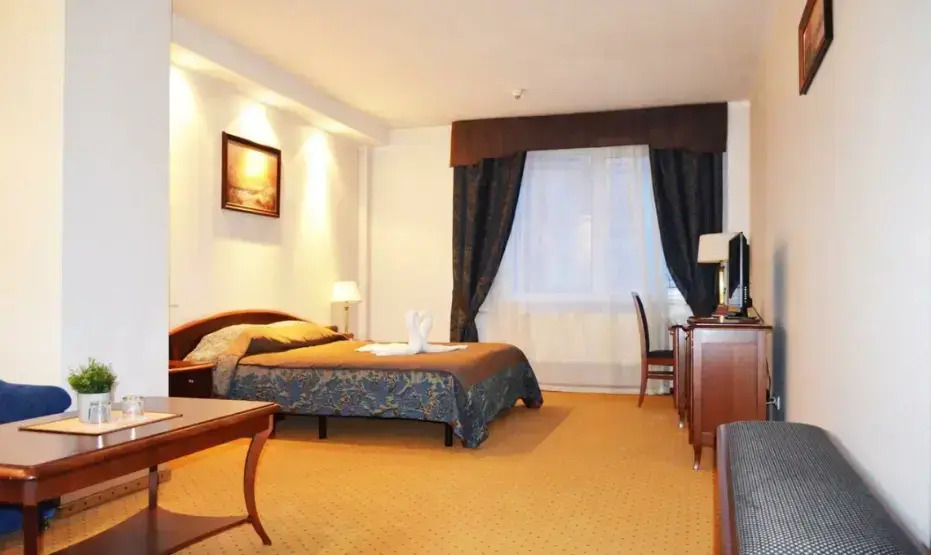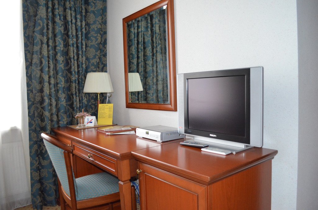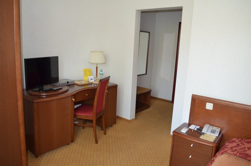 В номере вас будут ждать телевизор, мини-бар и халат. Перечисленные услуги есть не во всех номерах.