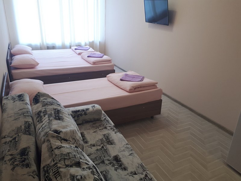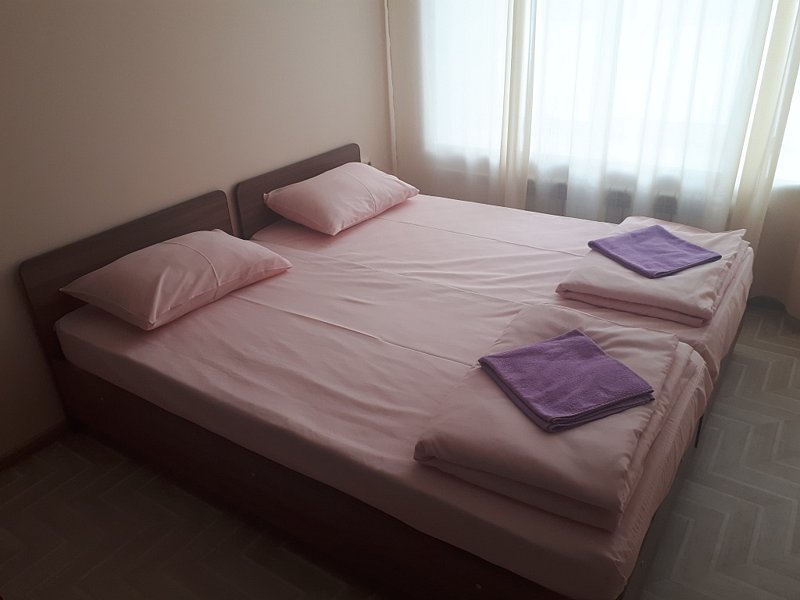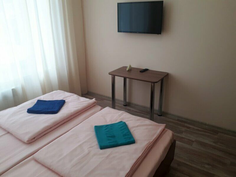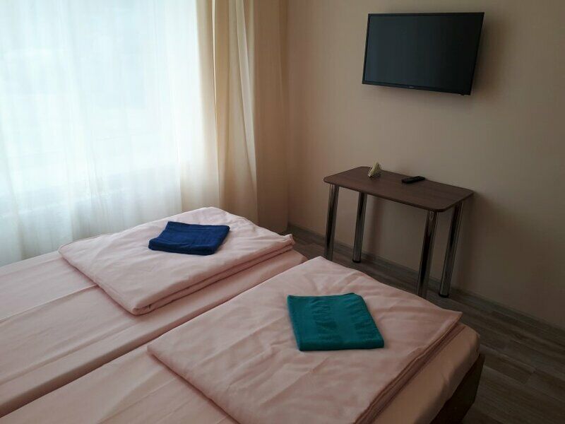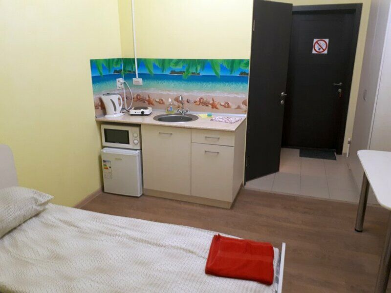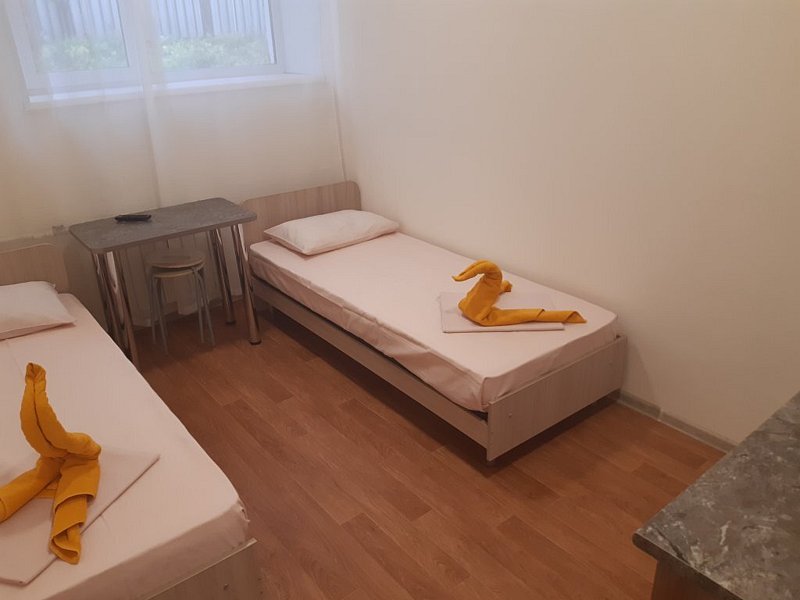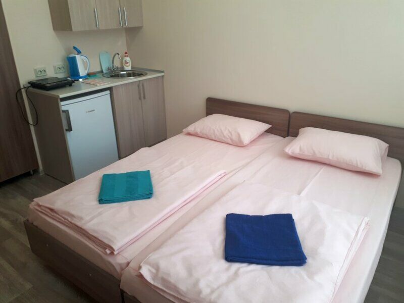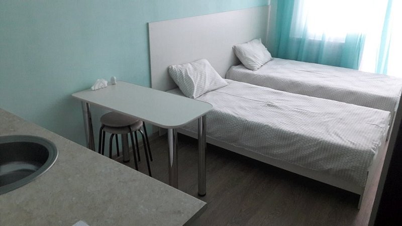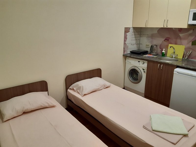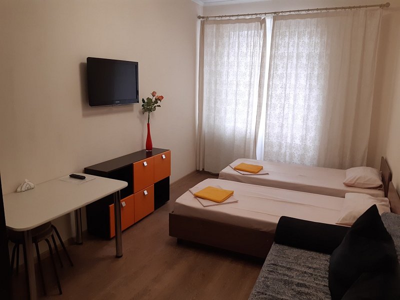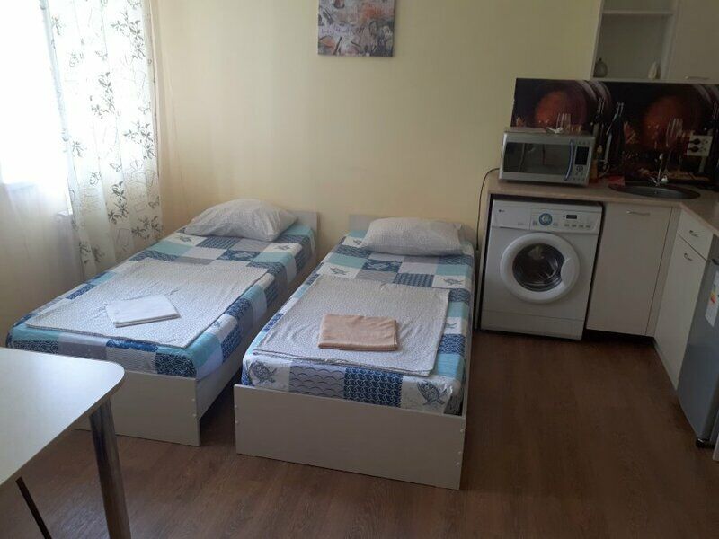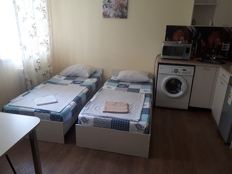 Чистая уютная студия, чистое постельное бельё, полотенца. В номере есть телевизор, кабельное ТВ, Wi-Fi, чайник, холодильник и все необходимое для комфортного проживания. Спальные места: односпальные кровати.