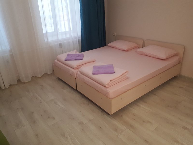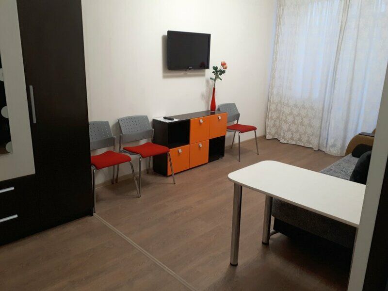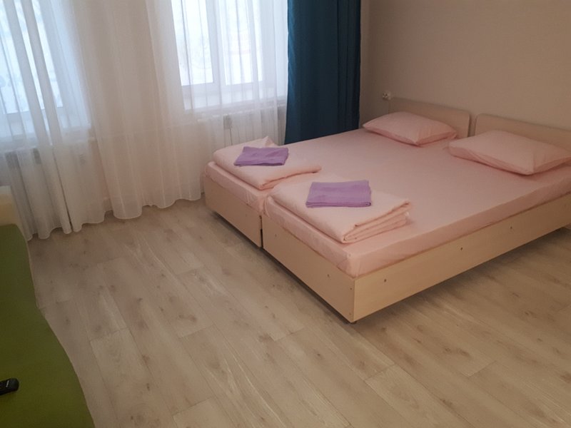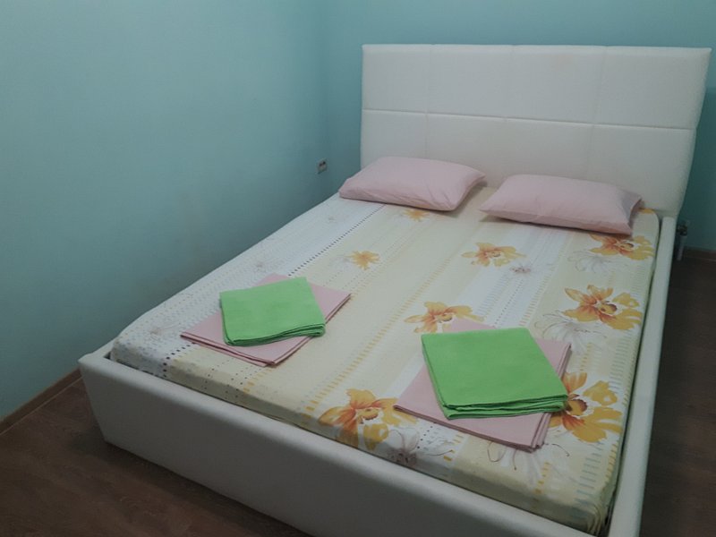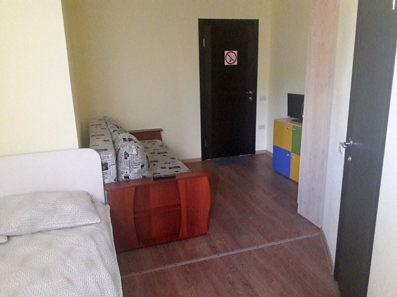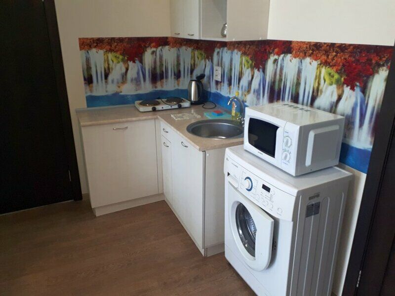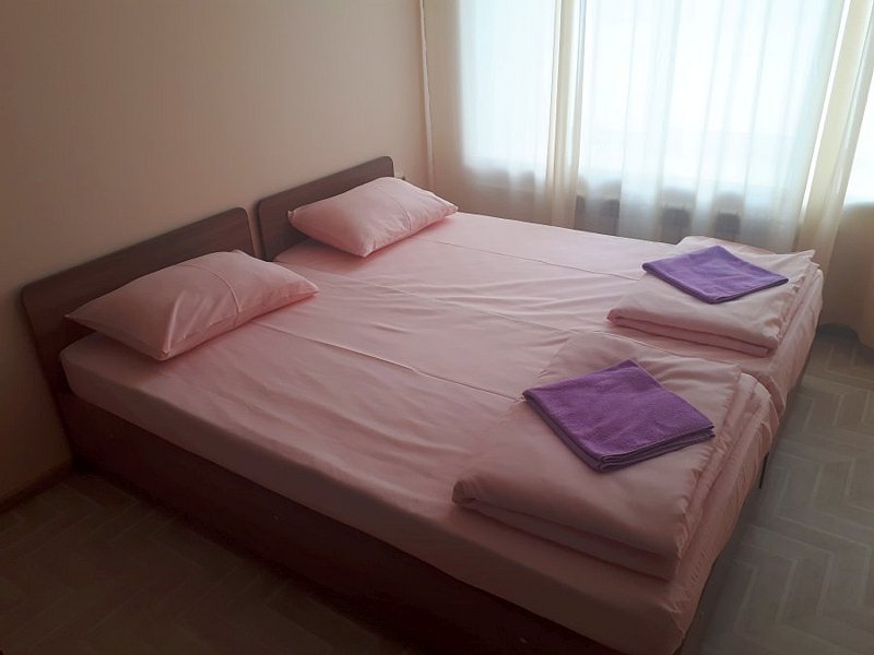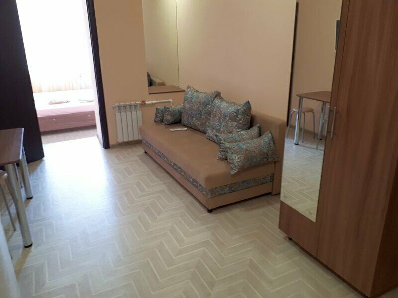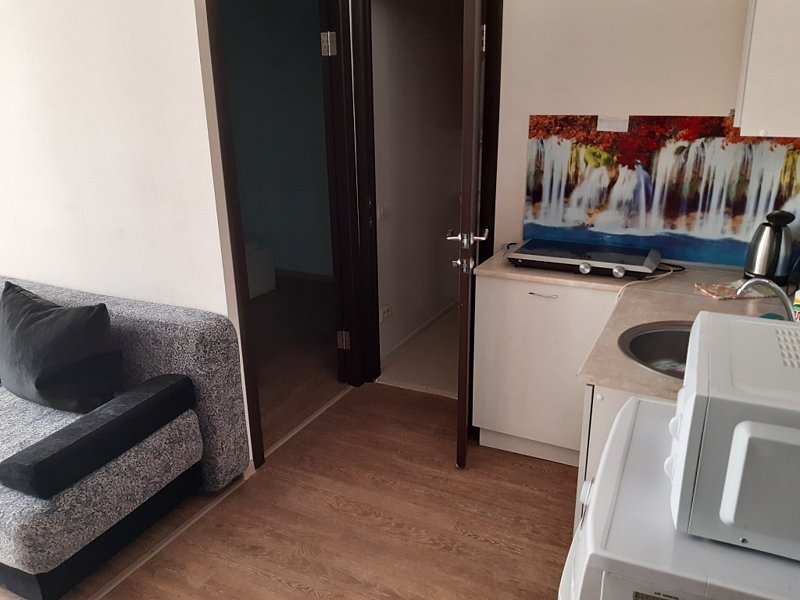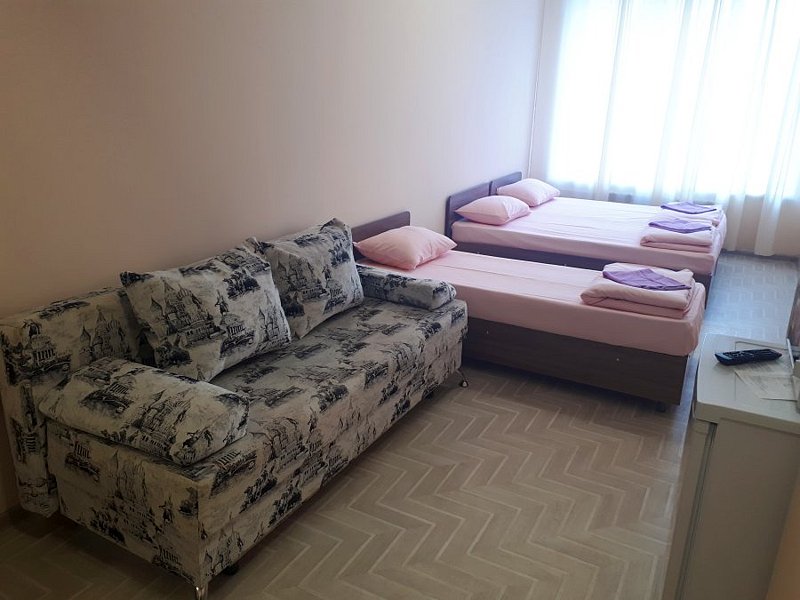 Чистая уютная студия, чистое постельное бельё, полотенца. В номере есть вся бытовая техника, посуда, телевизор, кабельное ТВ, Wi-Fi, стиральная машина автомат, СВЧ печь, чайник, плитка, холодильник и все необходимое для комфортного проживания. Спальные места: раскладной диван, односпальные кровати.