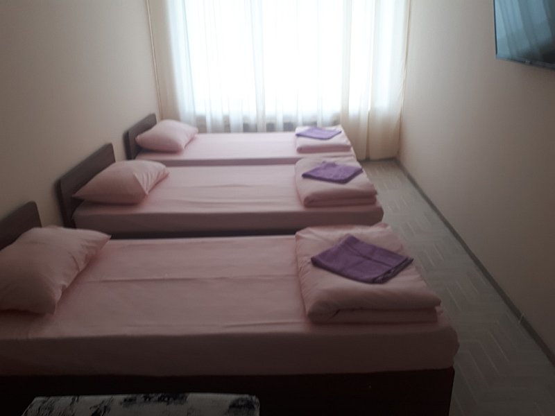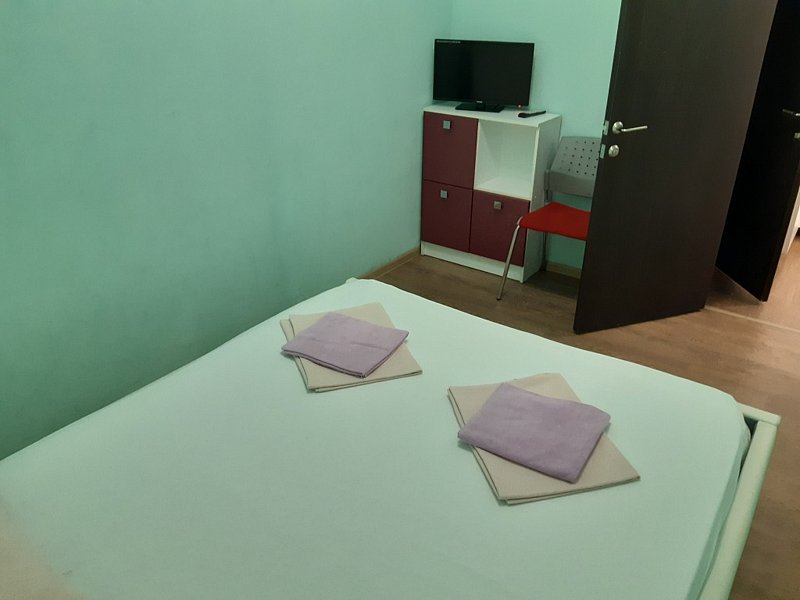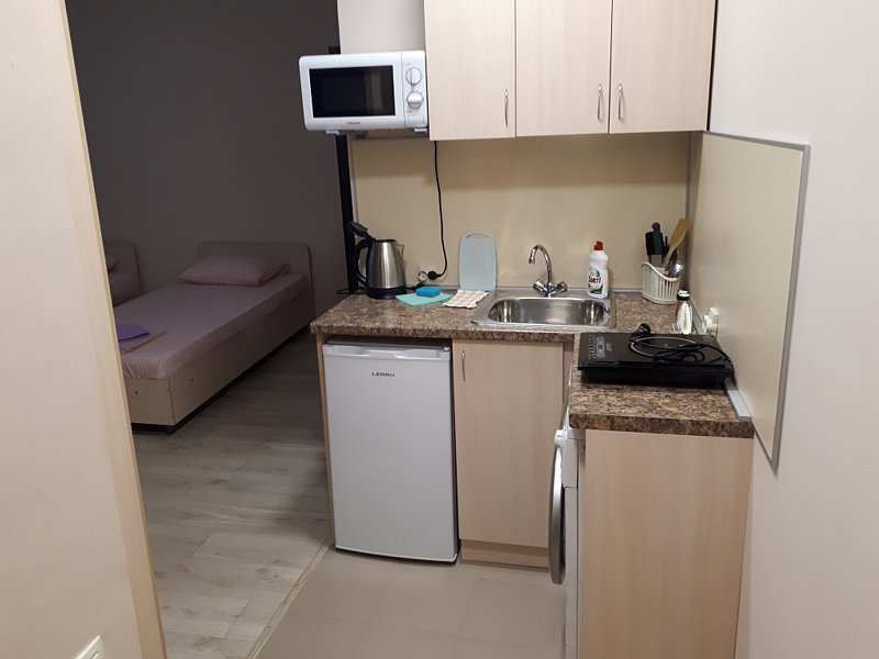 В номере — Мини кухня, душ, чайник, СВЧ-печь, электрическая плита, холодильник, WiFi, кабельное телевидение, LED телевизор, фен, утюг, ортопедические матрасы, платяной шкаф, посуда столовая, чайная и для приготовления пищи, моющие средства, щетка для обуви и пр. Все необходимое для комфортного проживания.