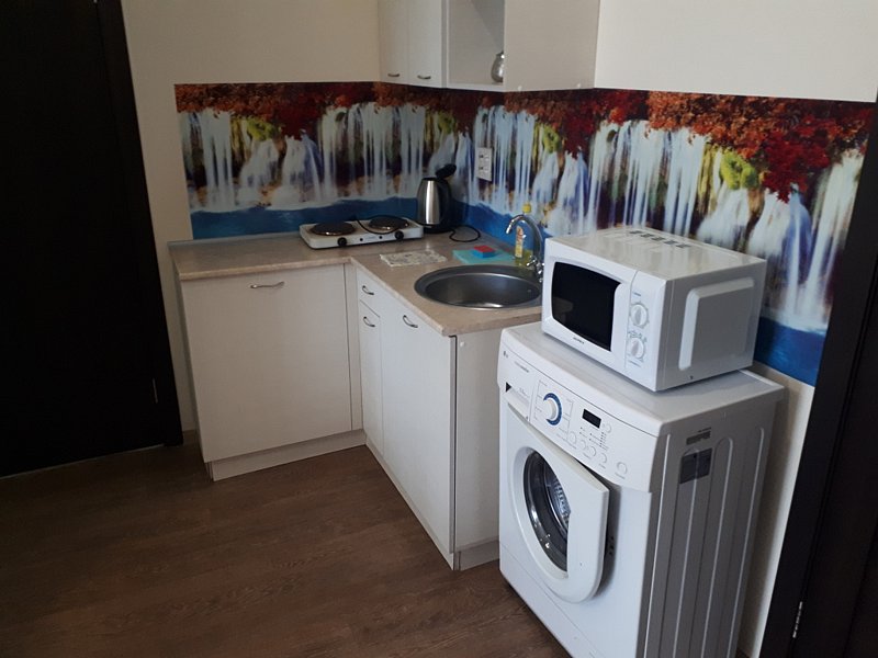 В номере Вас ждут — Мини кухня, стиральная машина, душ, чайник, СВЧ-печь, электрическая плита, холодильник, WiFi, кабельное телевидение, LED телевизор, фен, утюг, ортопедические матрасы, платяной шкаф, посуда столовая, чайная и для приготовления пищи, моющие средства, щетка для обуви и пр. Все необходимое для комфортного проживания.
