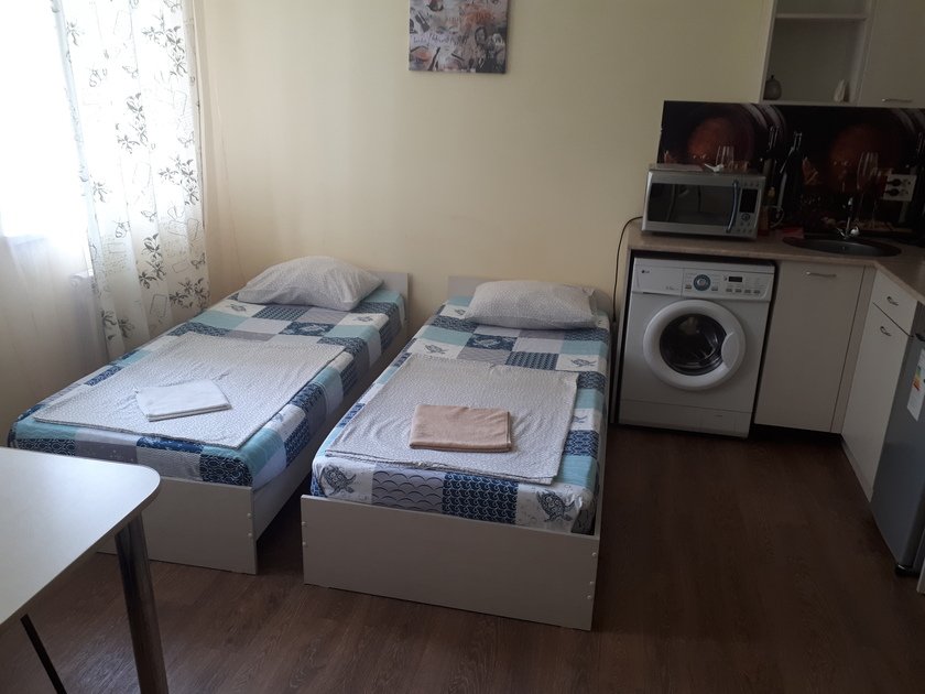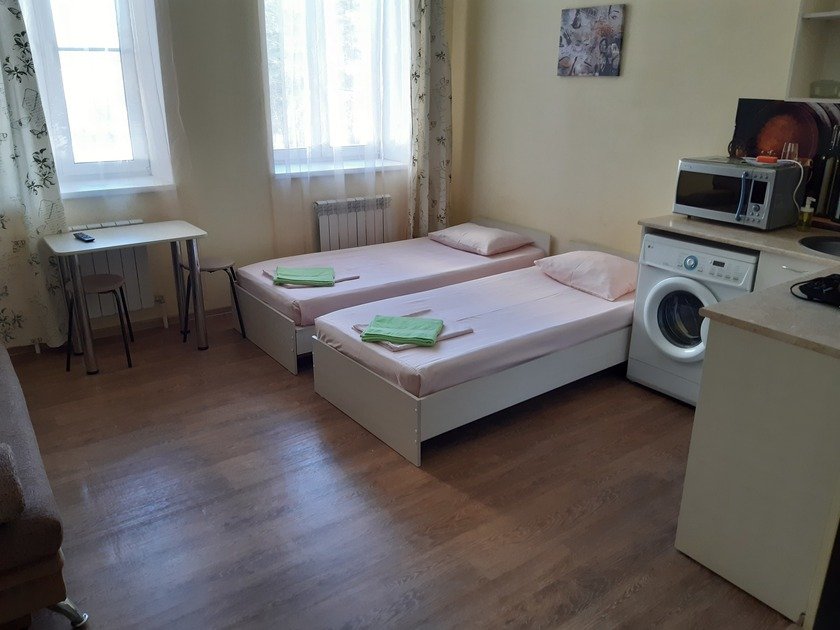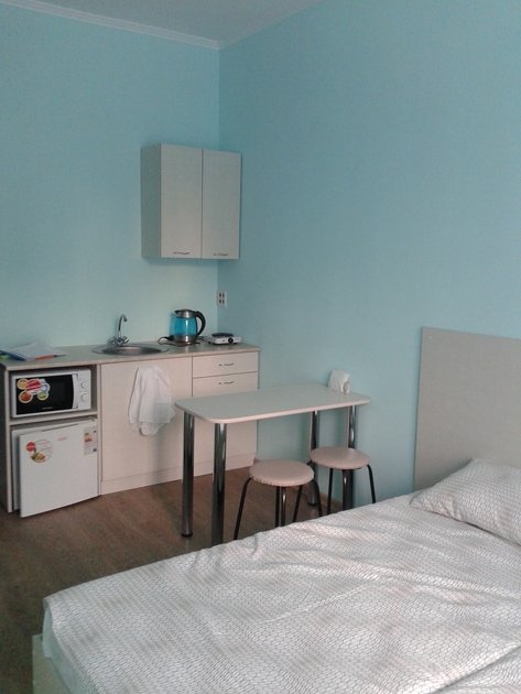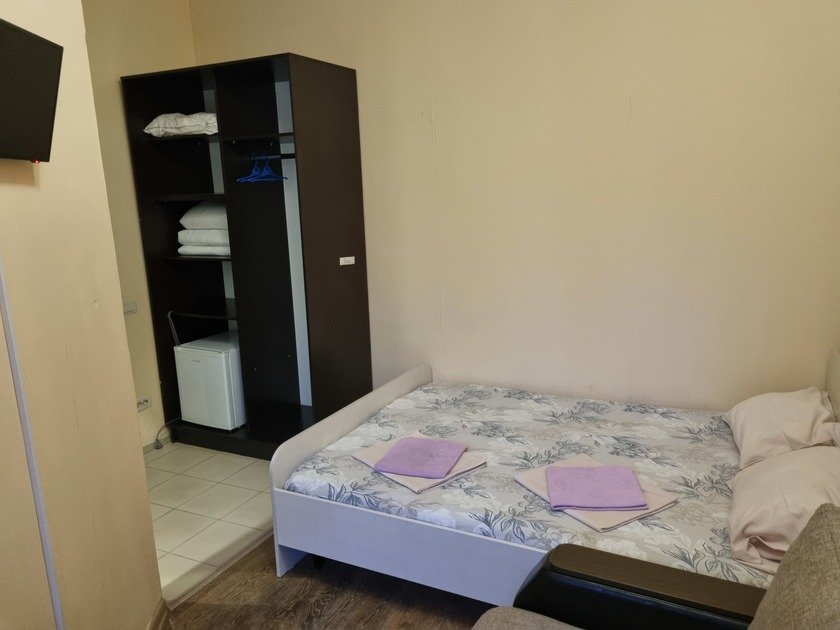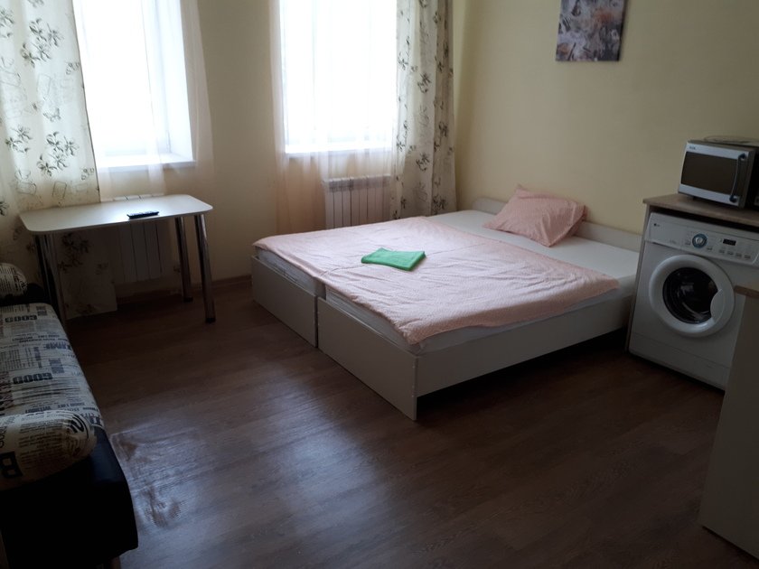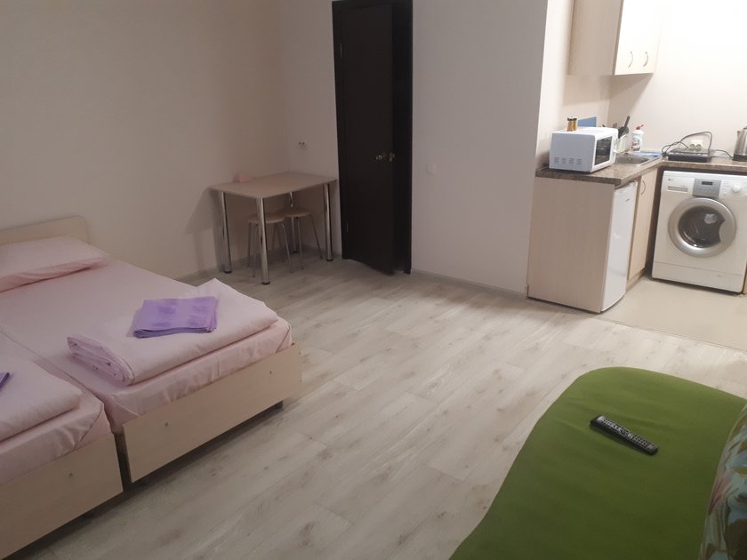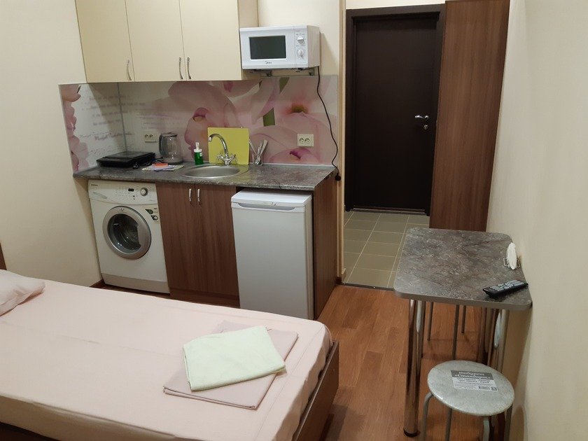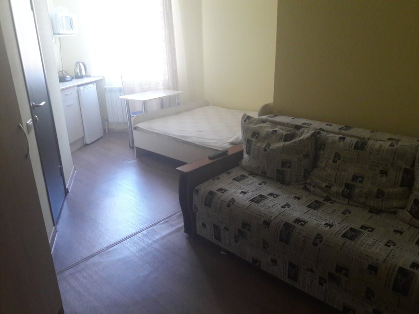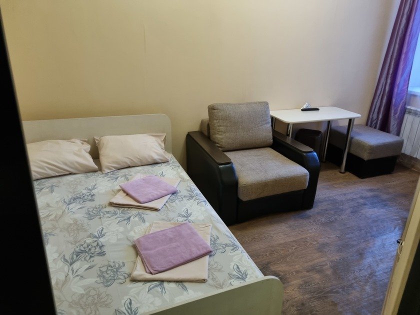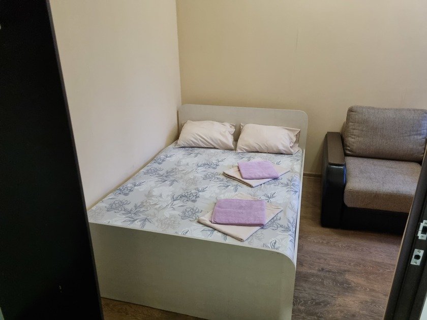 Чистая студия эконом в Гостевом Доме. Удобства на этаже. В студии есть чистое постельное бельё, полотенца, телевизор, кабельное тв, Wi-Fi, чайник, холодильник, утюг и все необходимое для комфортного проживания. Во дворе охраняемая парковка с видеонаблюдением.