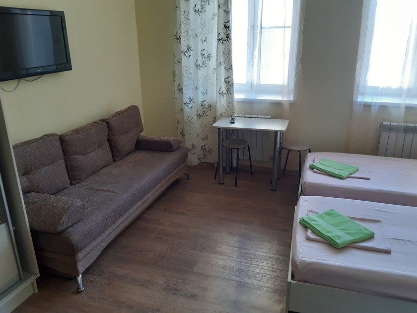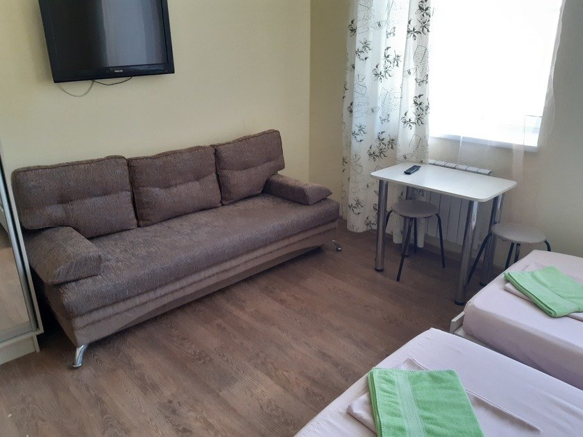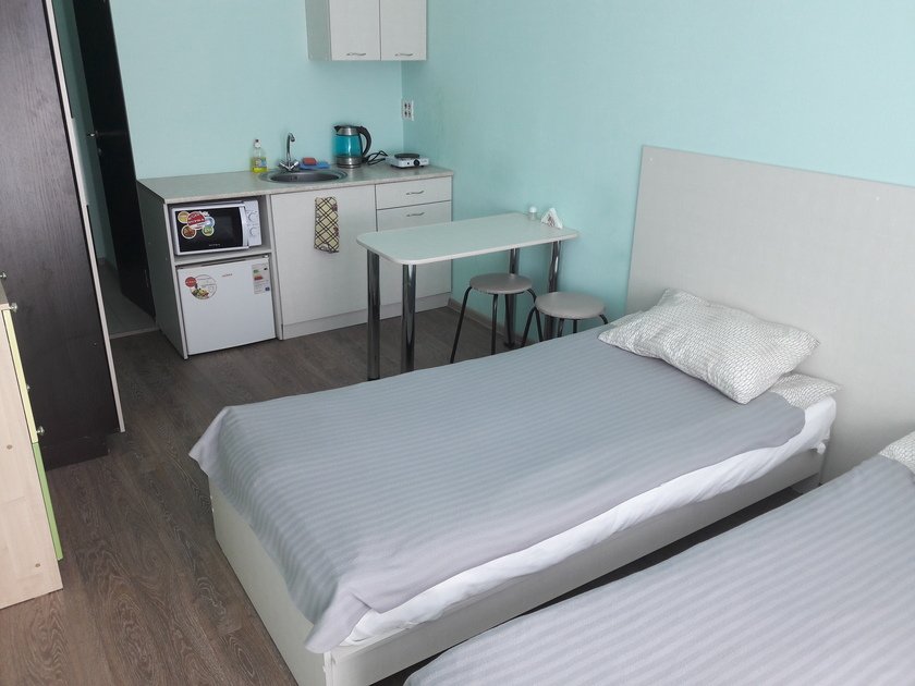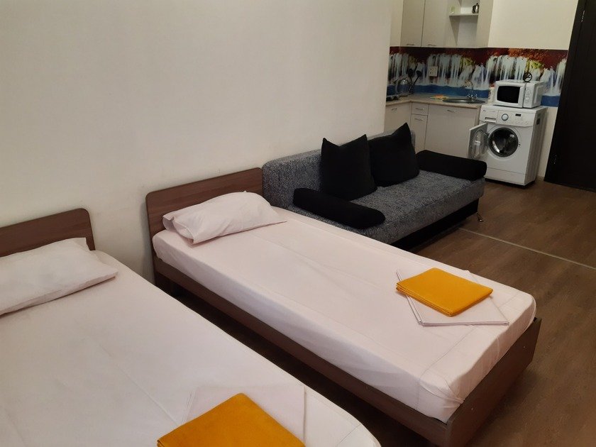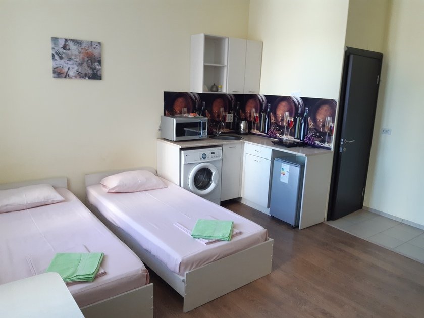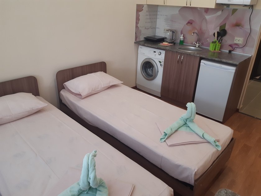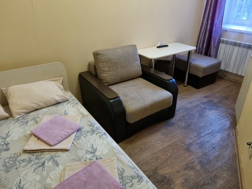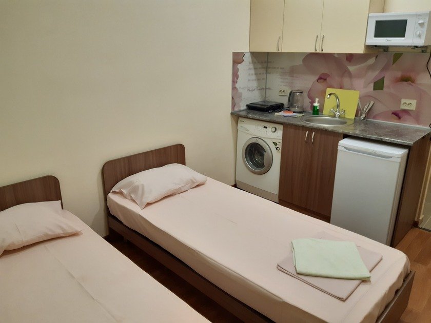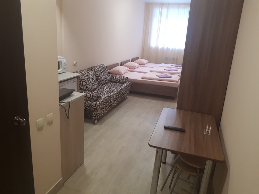 Чистая студия эконом в Гостевом Доме. Удобства на этаже. В студии есть чистое постельное бельё, полотенца, телевизор, кабельное тв, Wi-Fi, чайник, холодильник, утюг и все необходимое для комфортного проживания. Во дворе охраняемая парковка с видеонаблюдением.