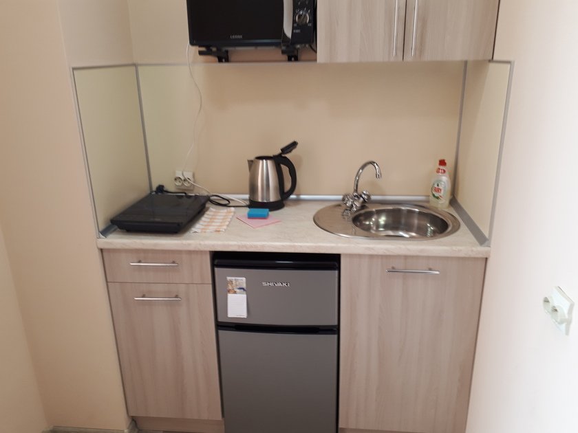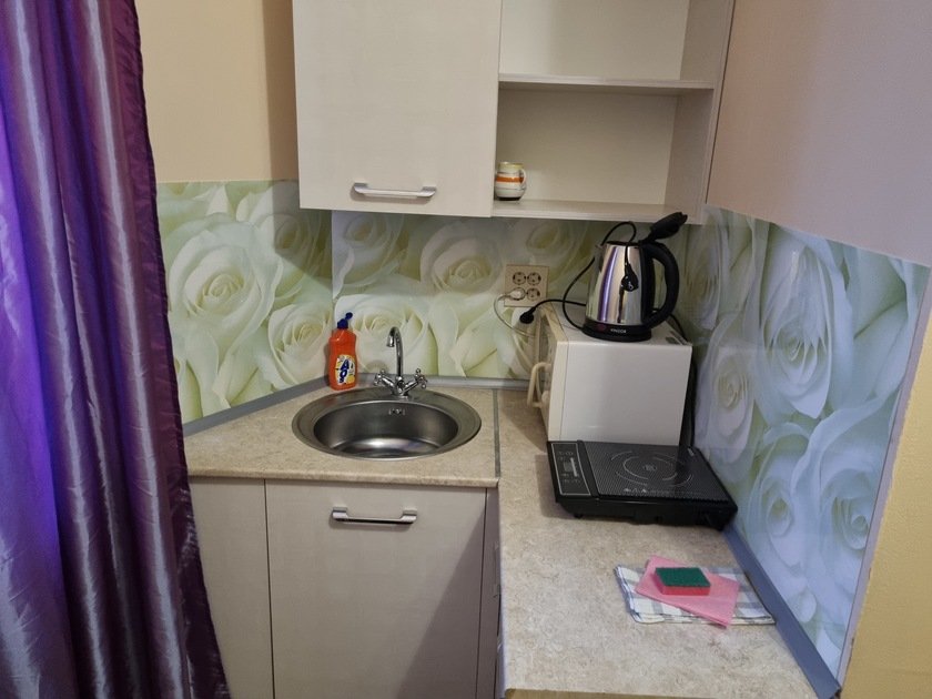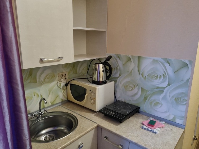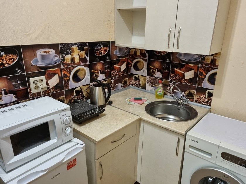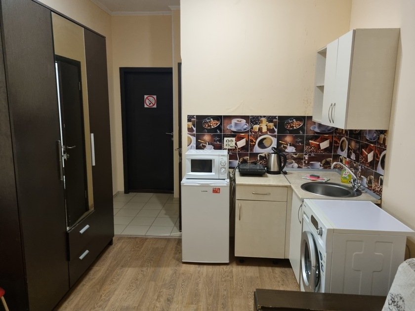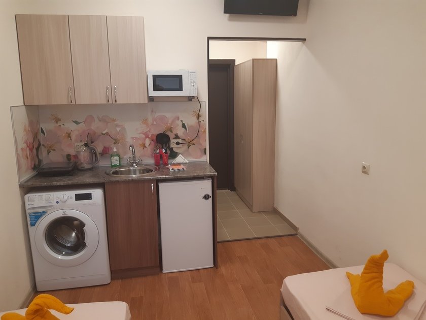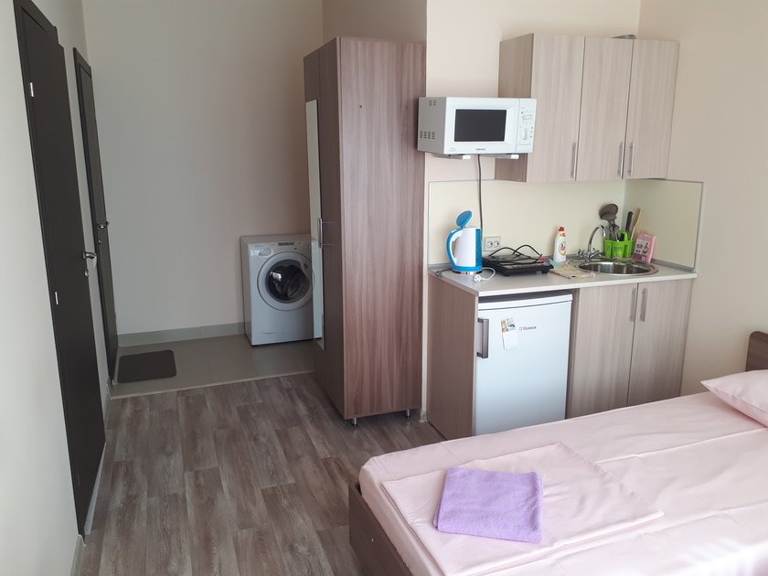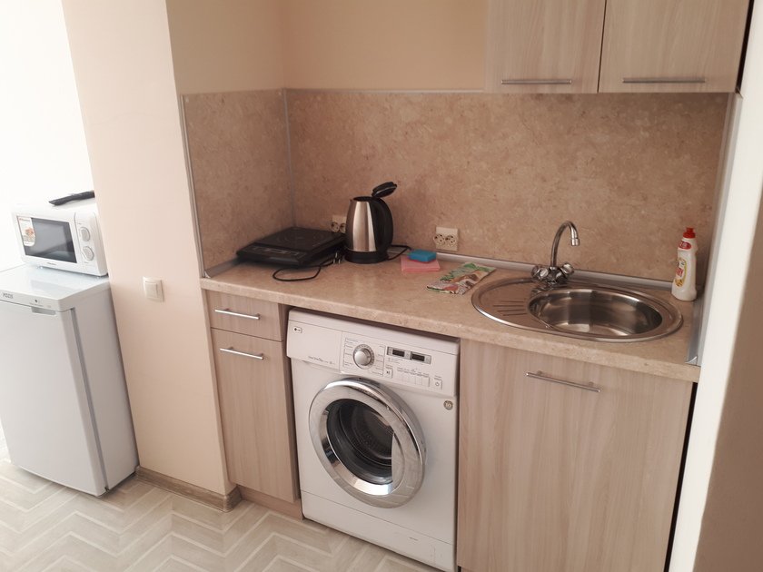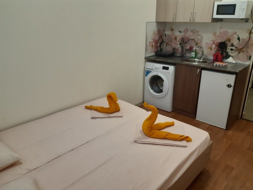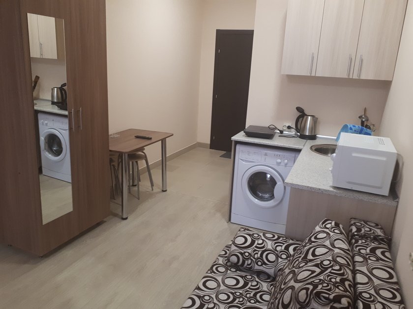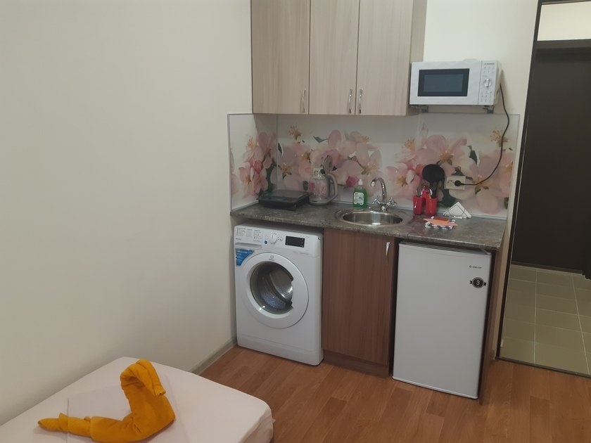 • В студии есть вся бытовая техника, чистое постельное бельё, полотенца, посуда, телевизор, кабельное тв, Wi-Fi, стиральная машина автомат, СВЧ печь, чайник, плитка, холодильник, утюг и все необходимое для комфортного проживания.