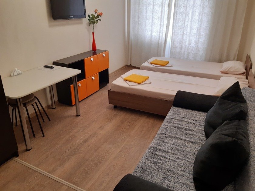 • У нас 16 апартаментов в одном доме, найдётся комфортный вариант для вас: студии, одно и двухкомнатные, с размещением от 2 до 6 человек