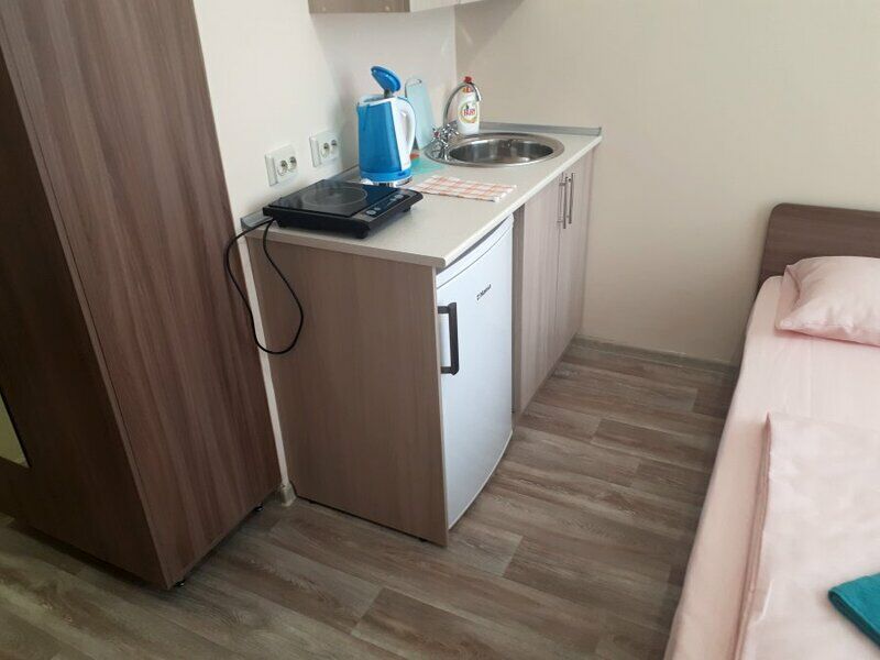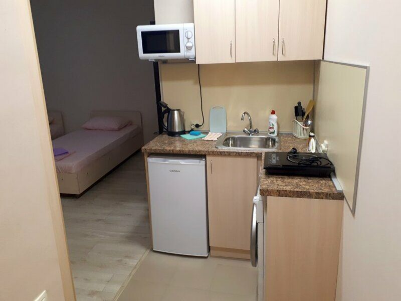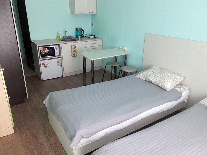 Чистая уютная студия, чистое постельное бельё, полотенца. В номере есть вся бытовая техника, посуда, телевизор, кабельное ТВ, Wi-Fi, СВЧ печь, чайник, плитка, холодильник и все необходимое для комфортного проживания. Спальные места: односпальные кровати.