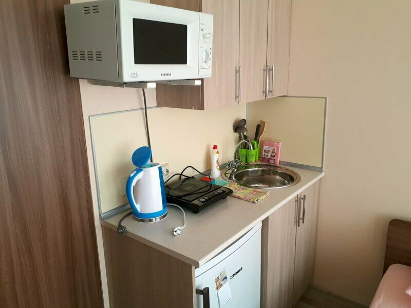 В номере Вас ждут — мини кухня, душ, чайник, СВЧ-печь, электрическая плита, холодильник, WiFi, кабельное телевидение, LED телевизор, фен, утюг, ортопедические матрасы, платяной шкаф, посуда столовая, чайная и для приготовления пищи, моющие средства, щетка для обуви и пр. Студия с балконом - для курящих. Все необходимое для комфортного проживания.