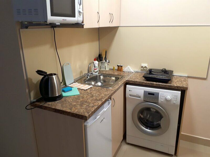 В номере Вас ждут — мини кухня, стиральная машина, ванна с душем, чайник, СВЧ-печь, электрическая плита, холодильник, WiFi, кабельное телевидение, LED телевизор, фен, утюг, ортопедические матрасы, платяной шкаф, посуда столовая, чайная и для приготовления пищи, моющие средства, щетка для обуви и пр. Студия с балконом - для курящих. Все необходимое для комфортного проживания.