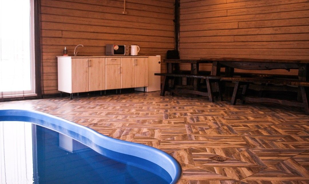 Просторная, уютная, баня с бассейном (размер 2*4). Вместимость до 25 человек.