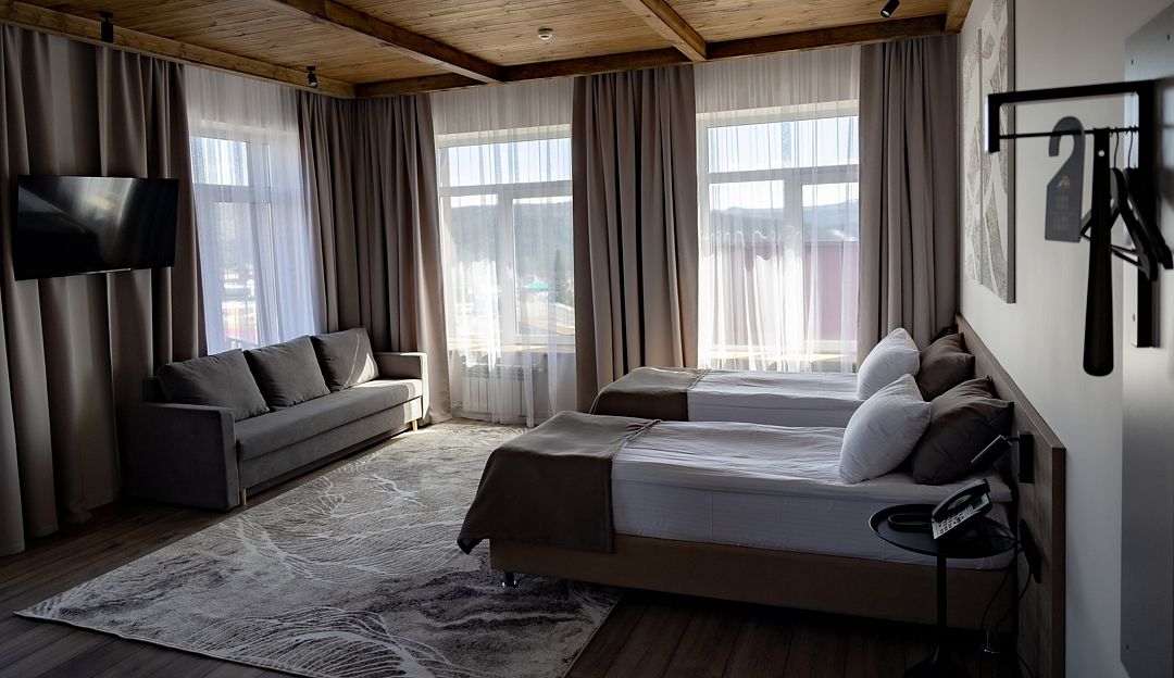 2-спальная кровать/две 1-спальные кровати, диван, шкаф, Х, Ч, ТВ, с/у с душем.