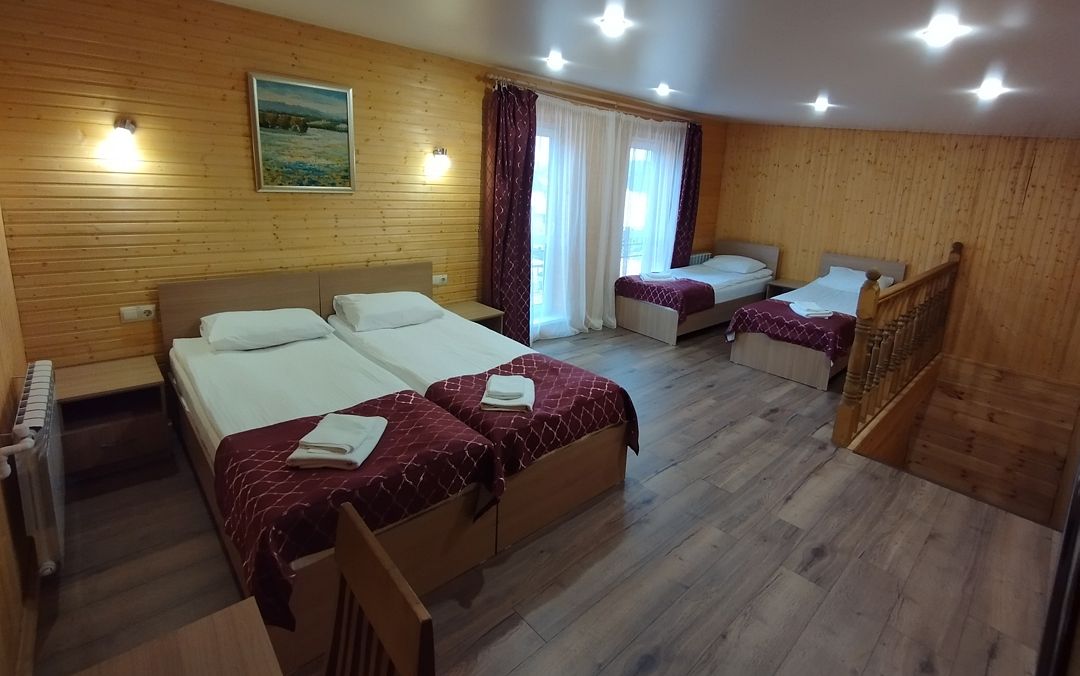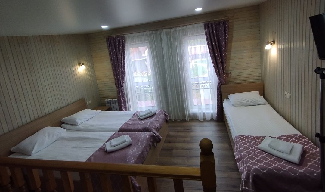 Три 1-спальные кровати, ТВ, Х, Ч, СВЧ, с/у с душем.
