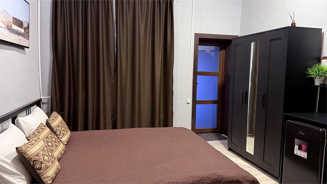 Wi-Fi, кондиционер, фен, банные полотенца, косметические средства, двуспальная кровать, шкаф для одежды, вешалки, мебельный гарнитур, набор посуды, унитаз, раковина, питьевая вода, отопление, отдельный вход в номер, душ, мангал, мини-холодильник, телевизор со Smart TV, номер для некурящих, вид на бассейн, двухъярусная кровать, экологичный подход, уборка номера, вешалки-плечики, веранда, затемняющая штора, без питомцев, бассейнВ номере