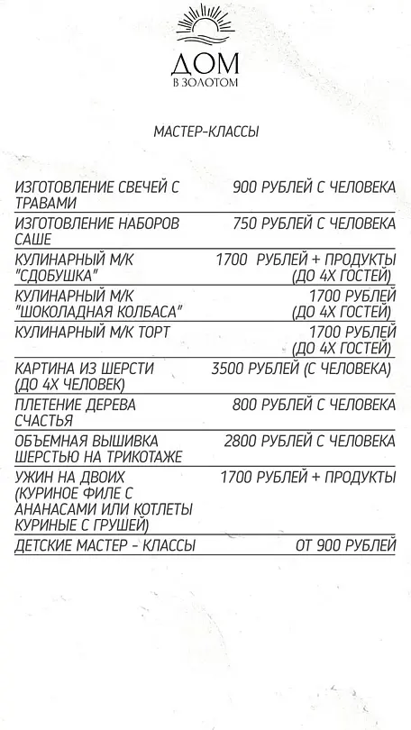 - сбор трав и изготовление чайных наборов, 1,5–2 часа (май — август) — 900 ₽/человек;