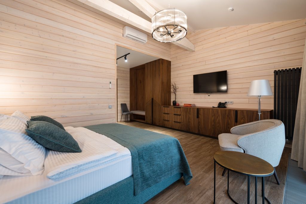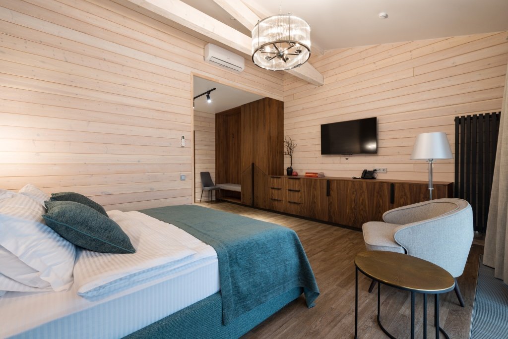 В номере гостей ждут телевизор и халат. Перечисленные услуги есть не во всех номерах.