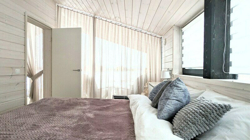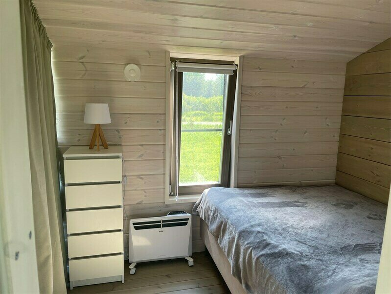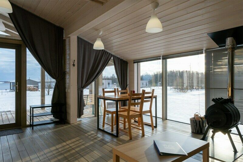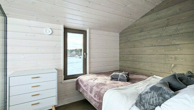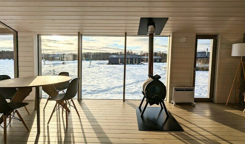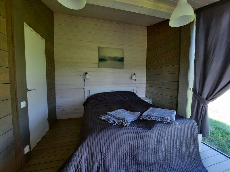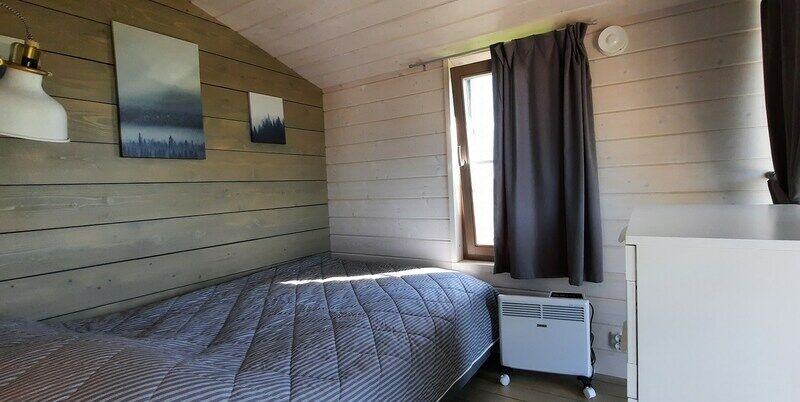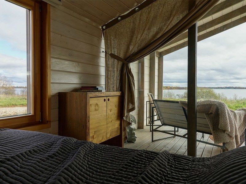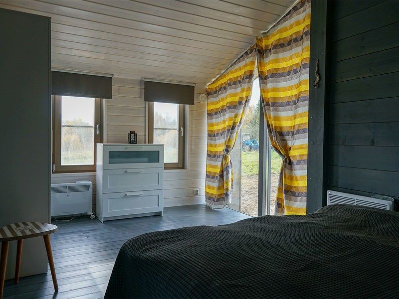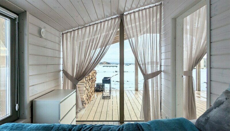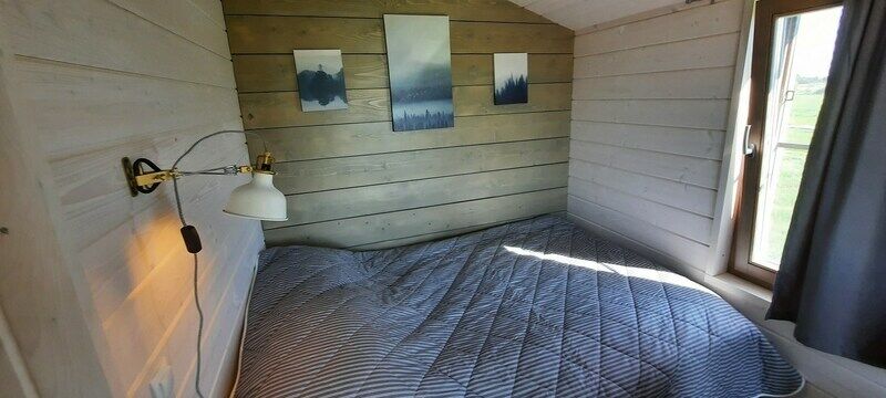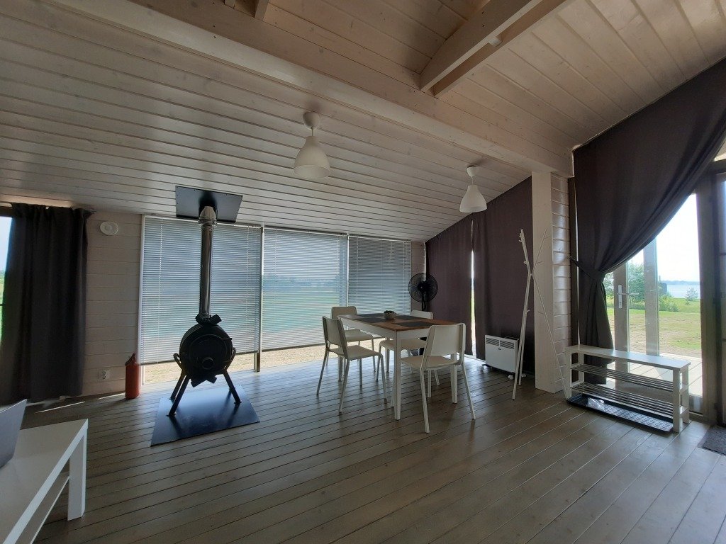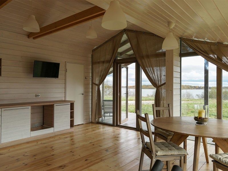 Дом площадью на второй линии от берега в 150 м от воды. Панорамное остекление и веранда, откуда открывается отличный вид на водохранилище. Удобная гостиная с камином, совмещенная с кухней. В доме одна спальня на для двух гостей + 2 места для дополнительного размещения в гостиной. Возможно еще одно дополнительное место.
