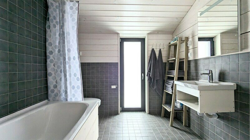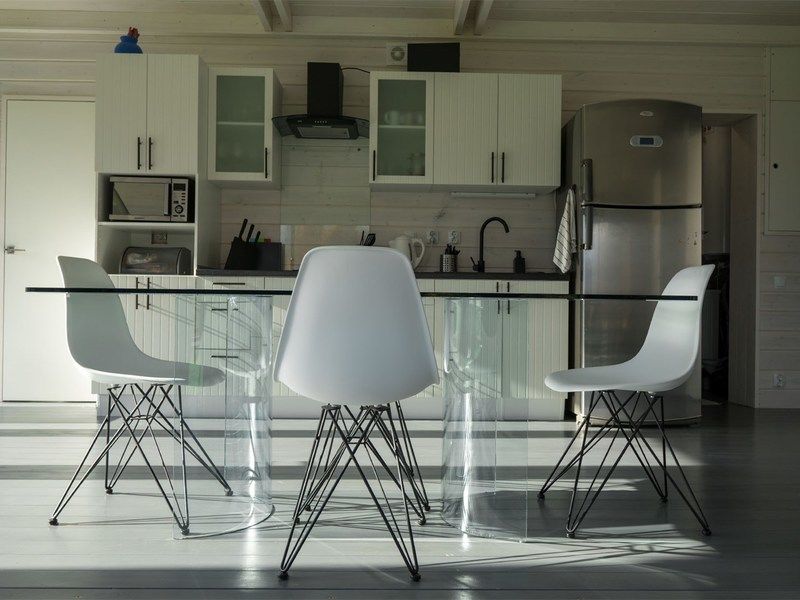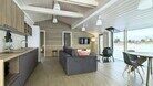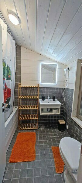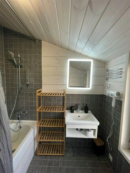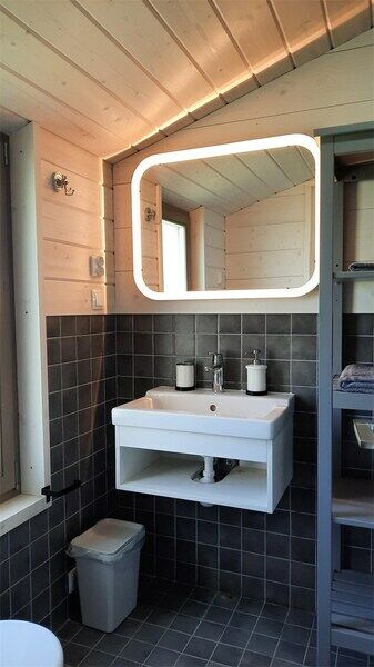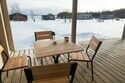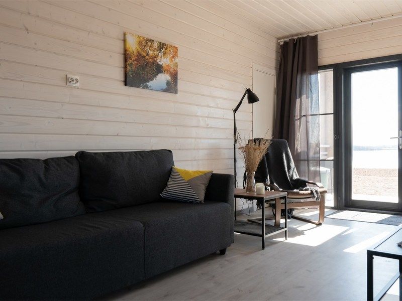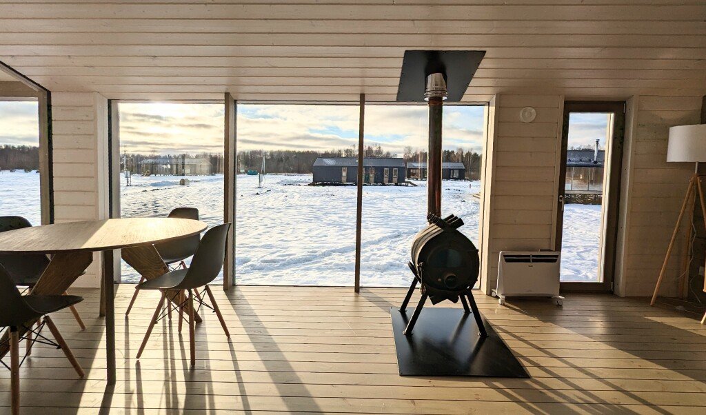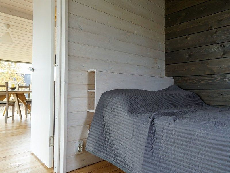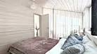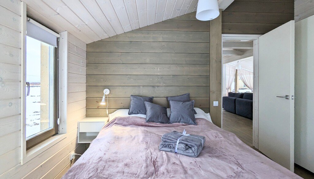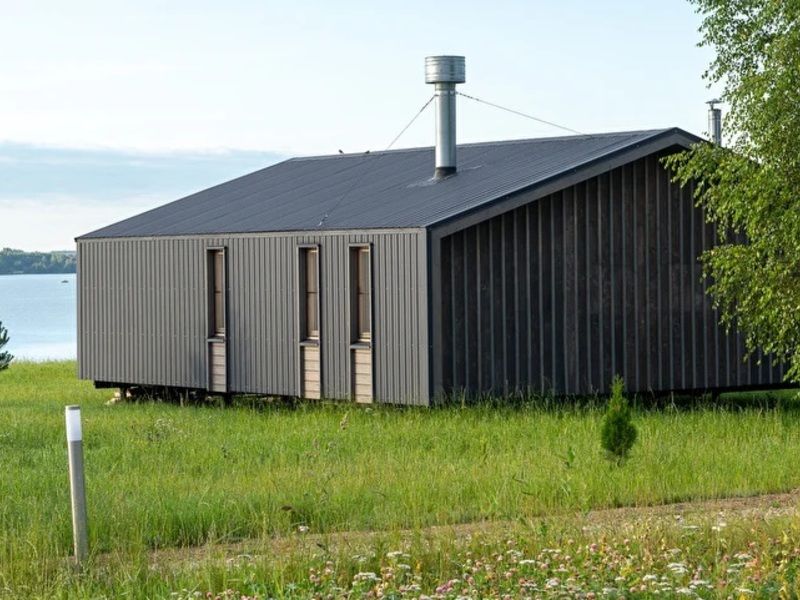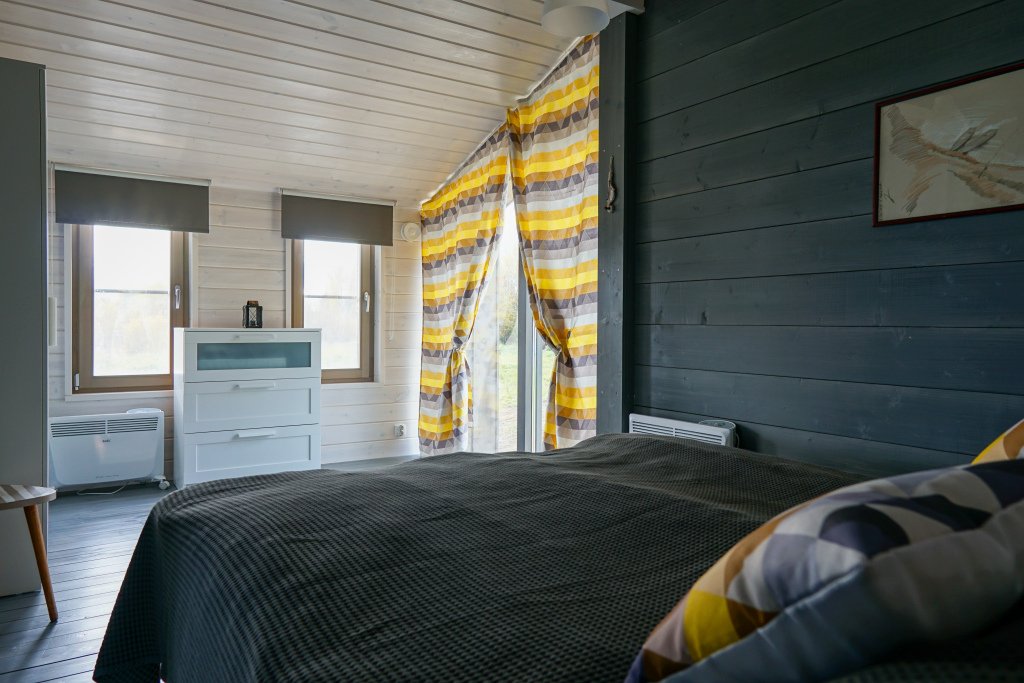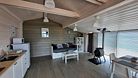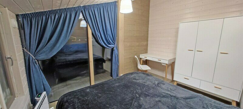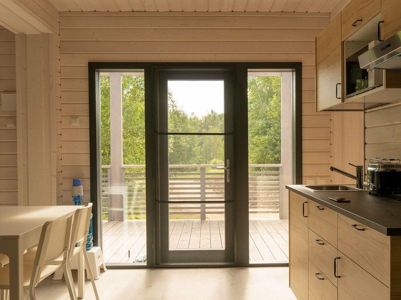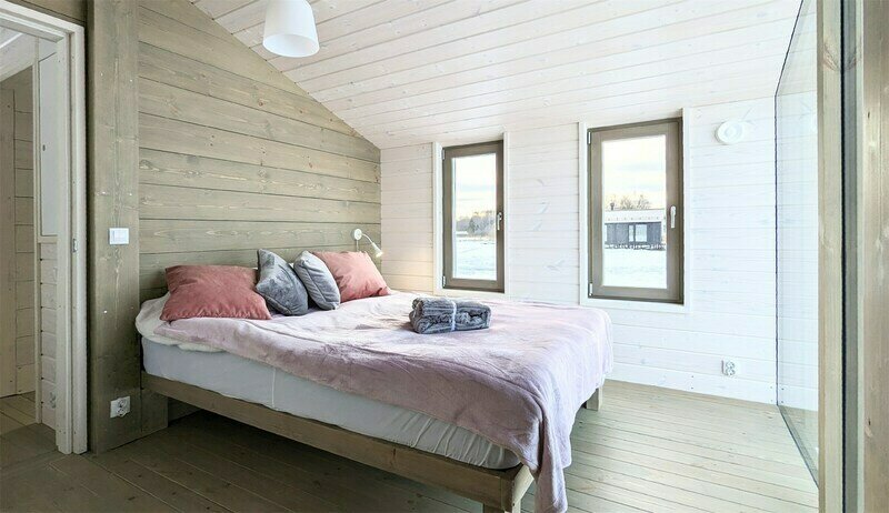 Дом площадью на второй линии от берега в 150 м от воды. Панорамное остекление и веранда, откуда открывается отличный вид на водохранилище. Удобная гостиная с камином, совмещенная с кухней. В доме одна спальня на для двух гостей + 2 места для дополнительного размещения в гостиной. Возможно еще одно дополнительное место.