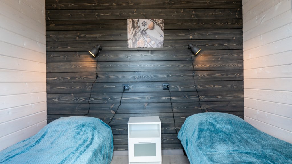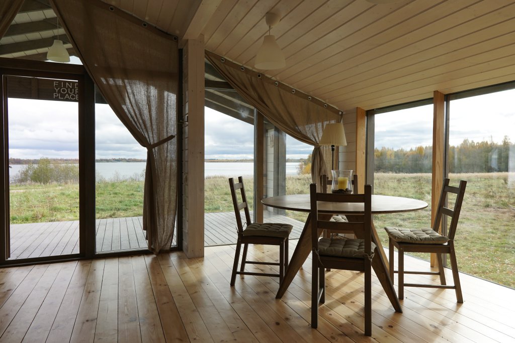 Отдыхающим предлагается размещение в уютных, комфортабельных деревянных домах с панорамным остеклением, оснащенных кухней и террасой, рядом с пляжем. На территории комплекса работает кафе с европейской кухней, где можно расслабиться и насладиться вкусной едой.