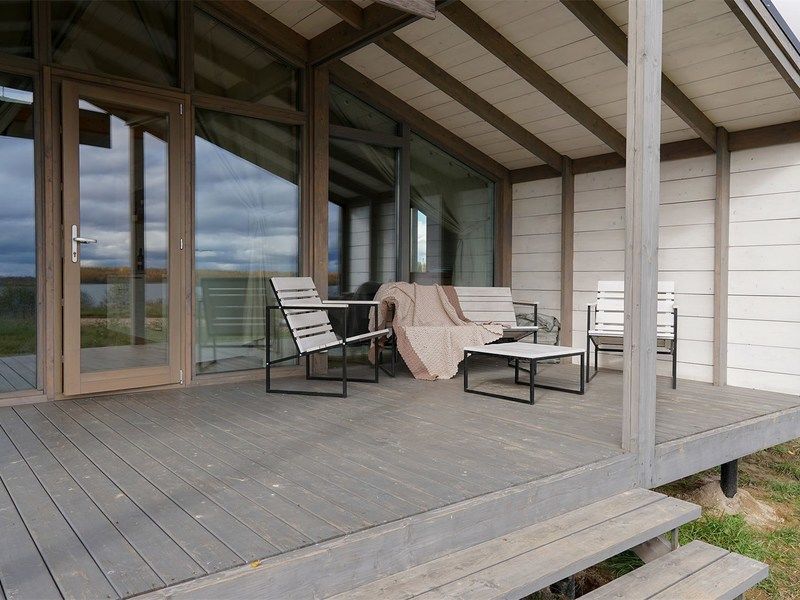 Дом площадью 43 м². Панорамное остекление и веранда, откуда открывается отличный вид на водохранилище.