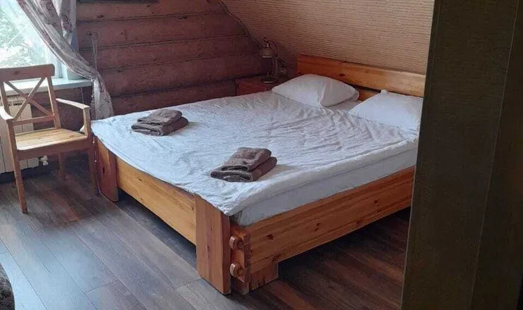 Гостевой эко-дом, расположенный в сосновом лесу предлагает размещение с возможностью питания в комфортабельных гостевых комнатах со всеми удобствами с видами на лес, озера и реку. Дом выдержан в классическом охотничьем стиле. Для оформления интерьеров выбраны натуральные материалы: сосна, лен, хлопок, бамбук.