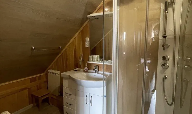 Номер на втором этаже дома, санузел с душем, вид на реку