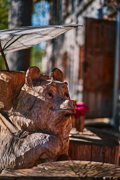 июнь 2021 г.Хорошее местоОригинальное оформление интерьеров и большая и красивая территория. Мы были в июне, и, несмотря на то, что были дождики все выходные, мы прекрасно провели время! На территории есть необычные беседки, можно заказать уху в котелке, сходить на экскурсии прямо на территории отеля