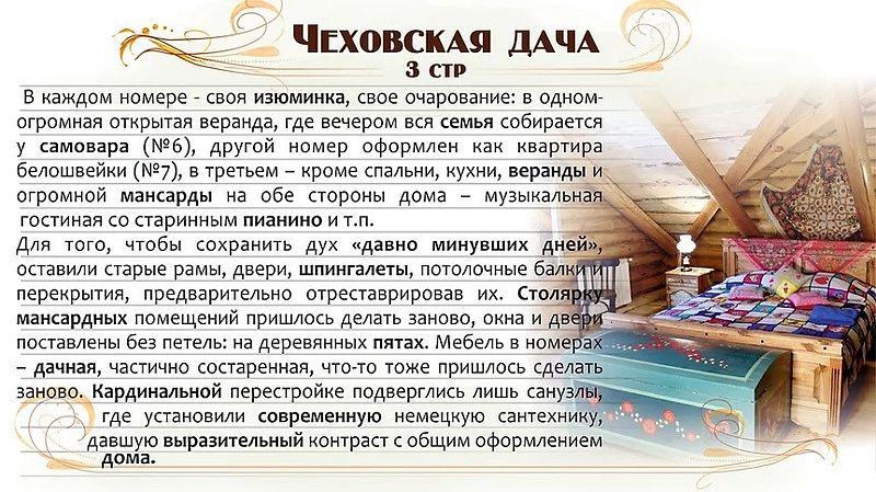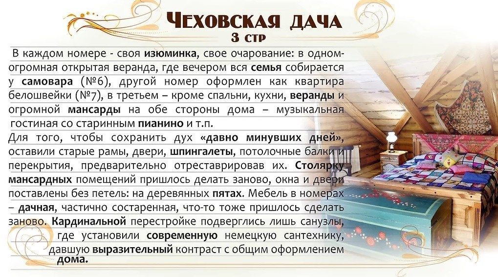 Трехкомнатный номер с индивидуальным дизайном и мебелью ручной работы в деревянном доме в стиле времен А.П.Чехова.