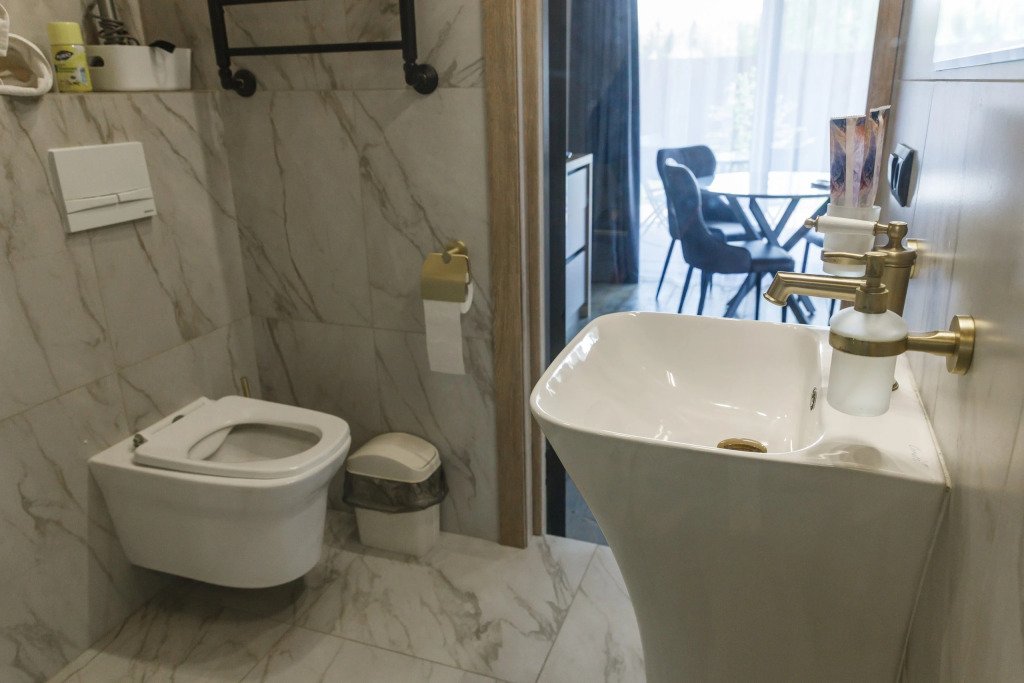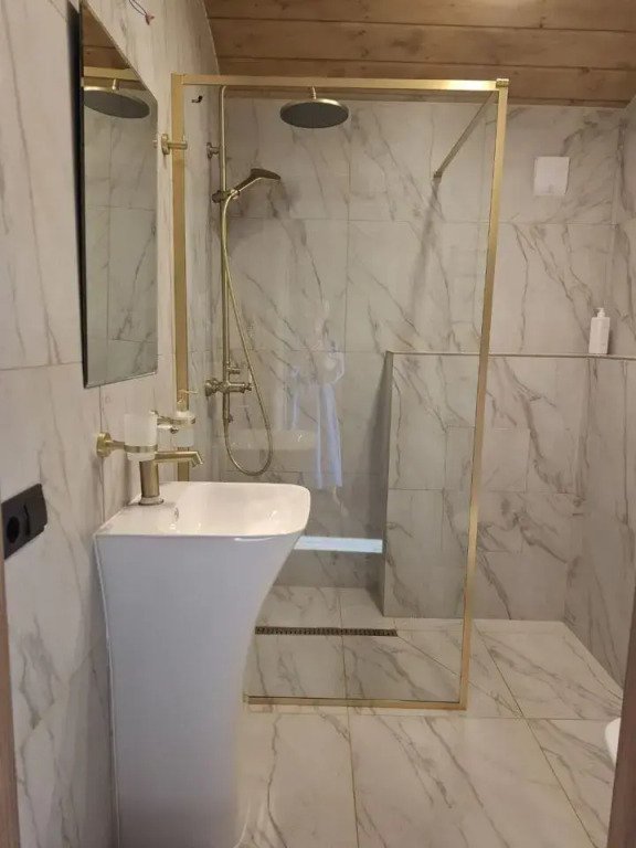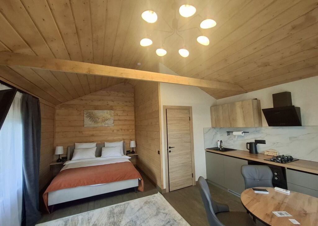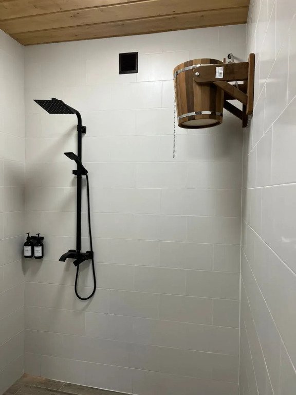 Частный дом подходит для проживания 1-4 человек. В доме имеется двуспальная кровать с ортопедическим матрасом и диван-кровать. Кухня оборудована кухонными принадлежностями и посудой. Ванная комната оснащена душем. Также предоставляется круглосуточная доставка продуктов и еды из ближайших магазинов и кафе.