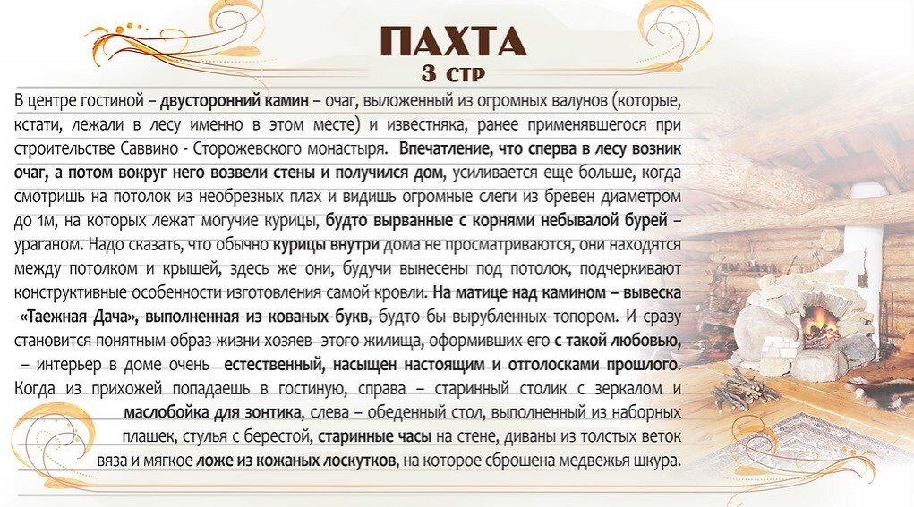 В Звенигороде, всего в 50 километрах от многолюдной Москвы, среди лесного массива, расположилось уютное шале «Пахта», где вы найдёте спокойный, тихий, но интересный отдых.