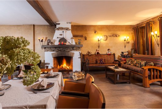 Здесь вы сможете разместиться в уютном коттедже и воспользоваться многочисленными услугами и удобствами на территории: сходить в ресторан, в баню или сауну, посетить массаж, различные ремесленные мастер-классы, арендовать спортивный инвентарь, снегоходы, квадроциклы, пострелять в тире и даже покататься верхом!