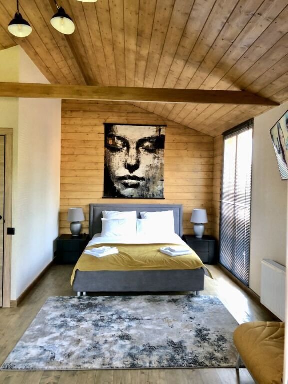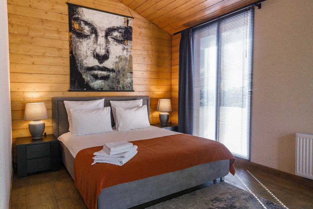 Двухместный коттедж с красивым видом из окна двуспальная кровать