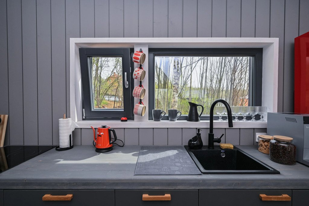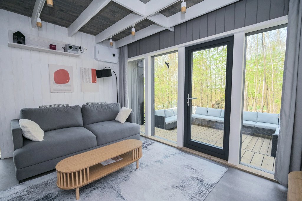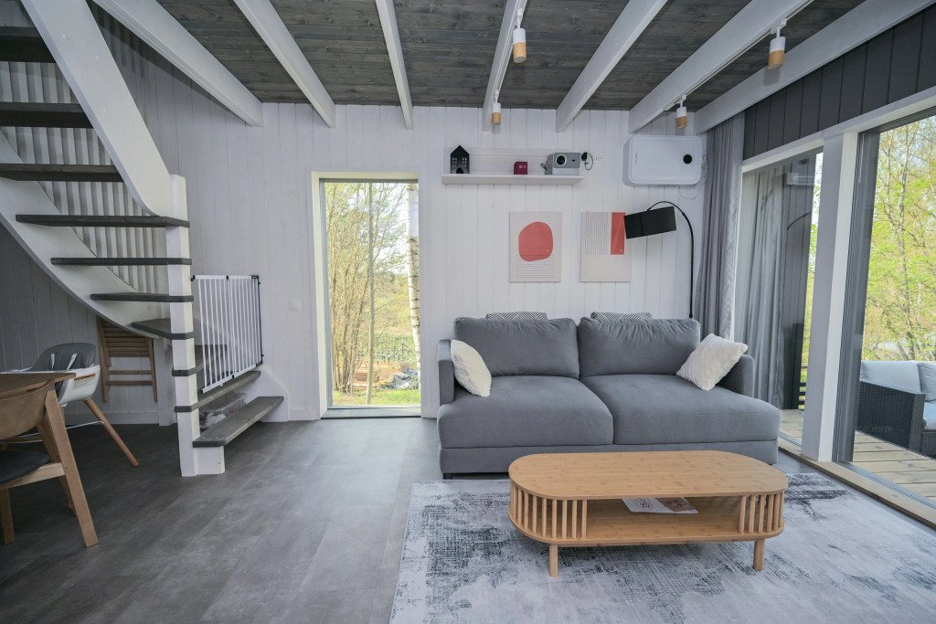 Дома с панорамным остеклением. Гостям доступны: скоростной Wi‑Fi до 550 Мбит/с и резервный интернет в домах и на территории; умный дом на базе Sprut Hub и Алисы; оборудованные кухни, фильтрованная питьевая вода.