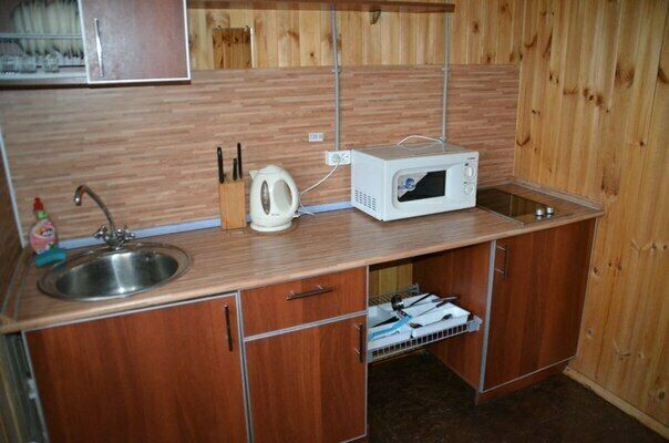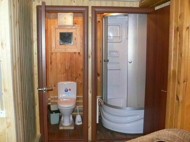 1 этаж: гостевая комната (мягкая мебель, тв спутниковое, стол, стулья, магнитофон), кухня (встроенная эл. плита, чайник, микроволновка, набор столовой посуды, холодильник), душевая кабина, санузел