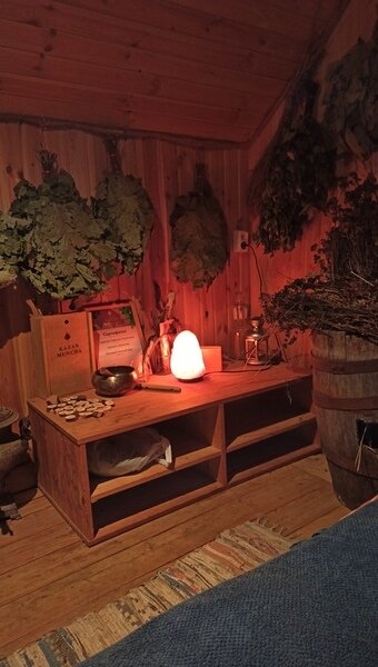 Инфраструктура: купель, чан, полотенца, березовые веники, чай/угощенияНастоящая русская баня по-черному. Вместимость: 5–6 человек. Дополнительно: целебные травы, веники, услуги банщика, горячий самовар.