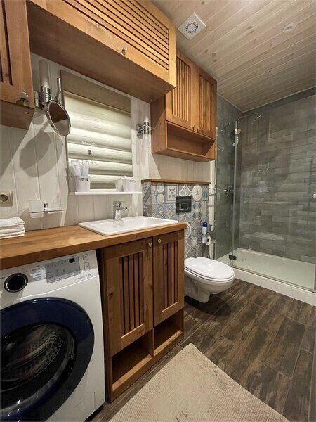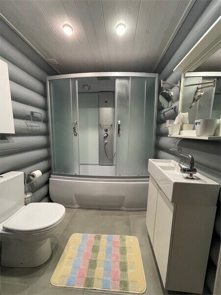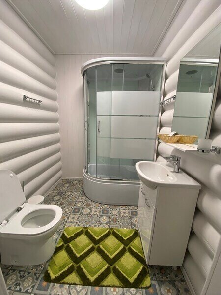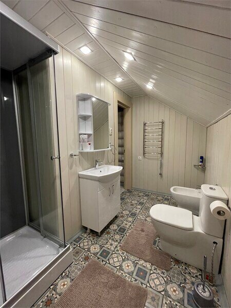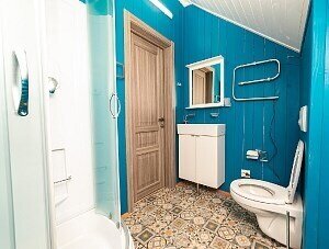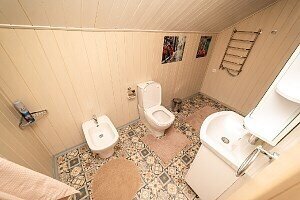 * 2 санузла (на 1-м и на 2-м этажах), душевая кабина (на 2-м этаже), фен, халаты, тапочки, полотенца, одноразовые средства личной гигиены.