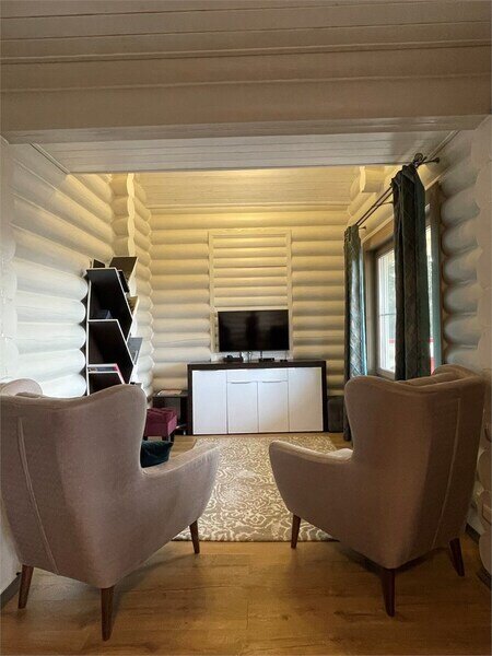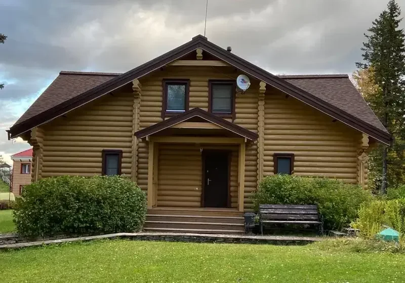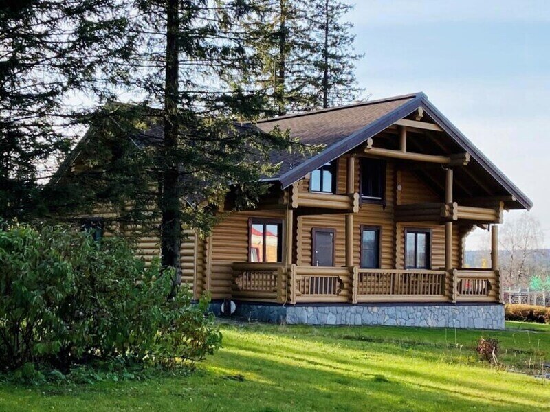 Четырехместный, двухэтажный коттедж из оцилиндрованного бревна: