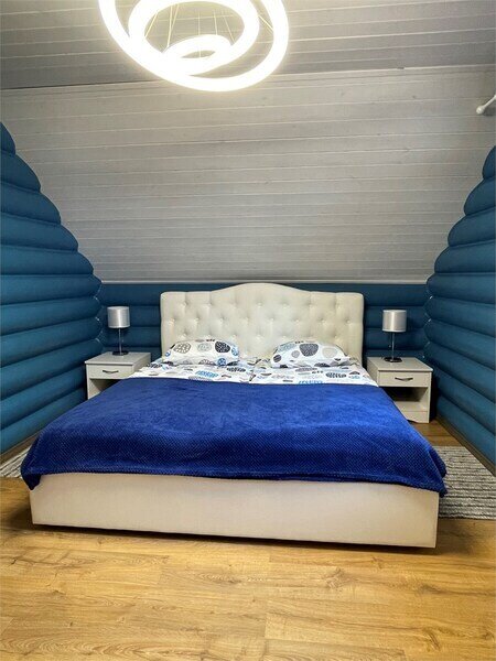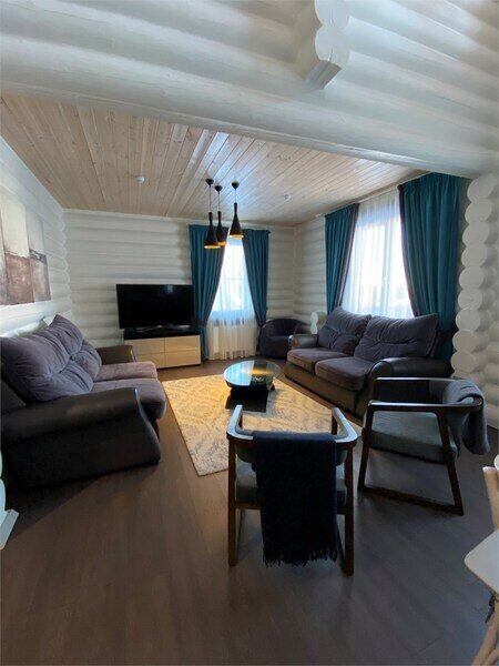 66 кв.м, двух этажный коттедж, оборудованная гостинная (телевизор, диваны,кресла), кухня (холодильник, СВЧ-печь,электрический чайник,стол,посуда),2 санузла душ, 2-спальные/1-спальные кровати, зона отдыха во дворе