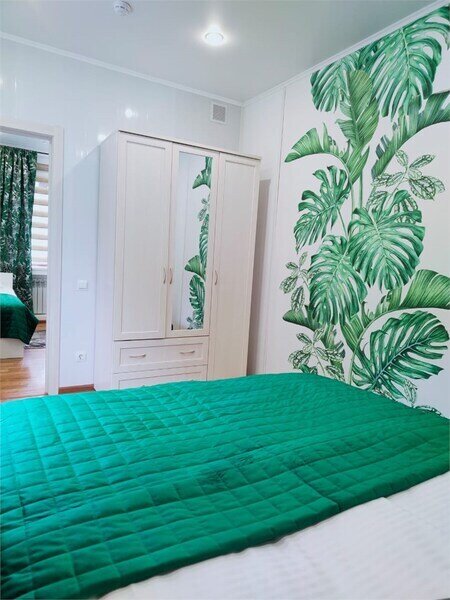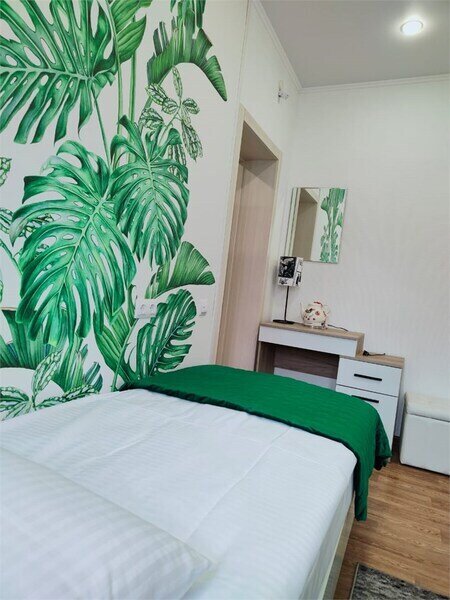 - две спальни (одна спальня - двух спальная кровать, одна спальня - две односпальные кровати);