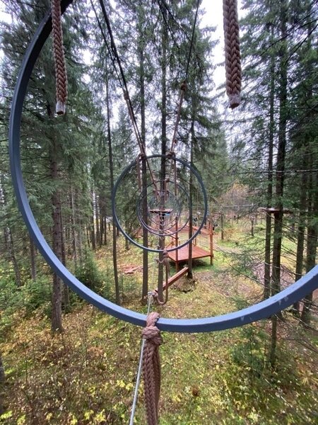 В парке вы можете испытать свою силу, ловкость и выносливость на маршрутах разного уровня сложности, помериться силами на полосе препятствий или же отдохнуть поваляться в гамаке на высоте 4 метра.